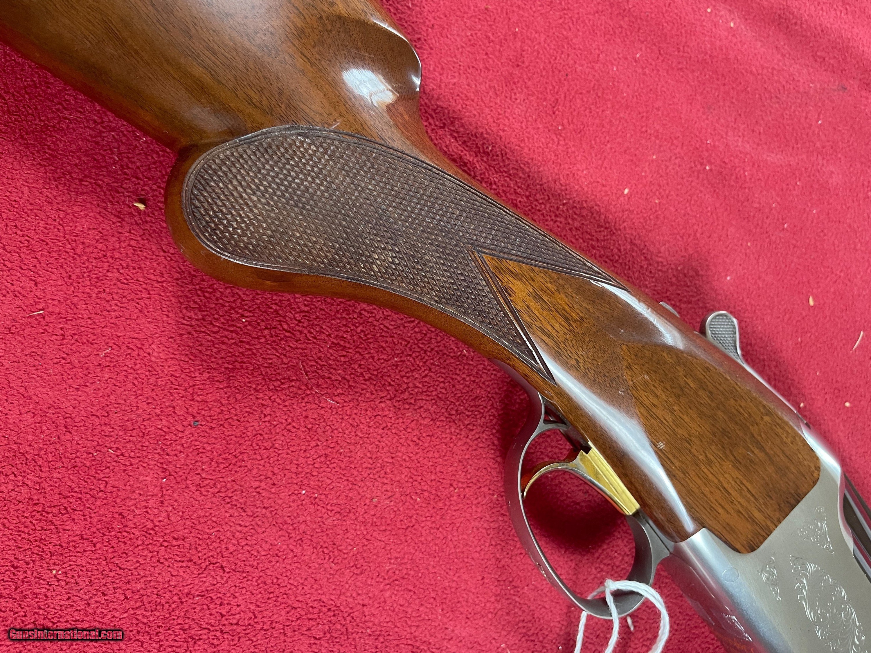 Description: Browning White Lightning O/U 12Ga shotgun. 28" Barrels, 3" chambers, 14 1/4" LOP over a Kick Ezz recoil pad. Exl. mechanical condition, Wood is crack free with moderate handling wear. Includes two extented chokes, Imp. Cyl./Mod. Nice Browning! VISA/MC Add 4% $45.00 shipping TN. Resident pays 9.25% sales tax. SOLD Shotgun Gauge: 12 Gauge Manufacturer: Browning Model: White Lightning Serial Number: 12532mm131 Barrel Length: 28 LOP: 14 1/4 Item Location: TN. |