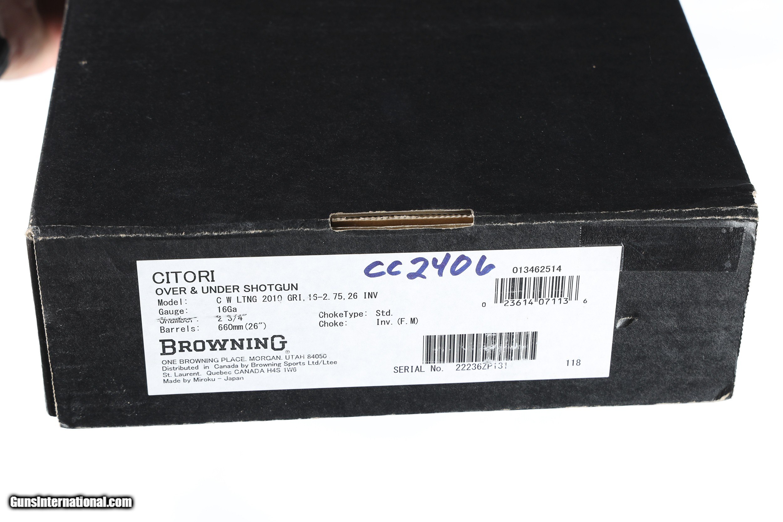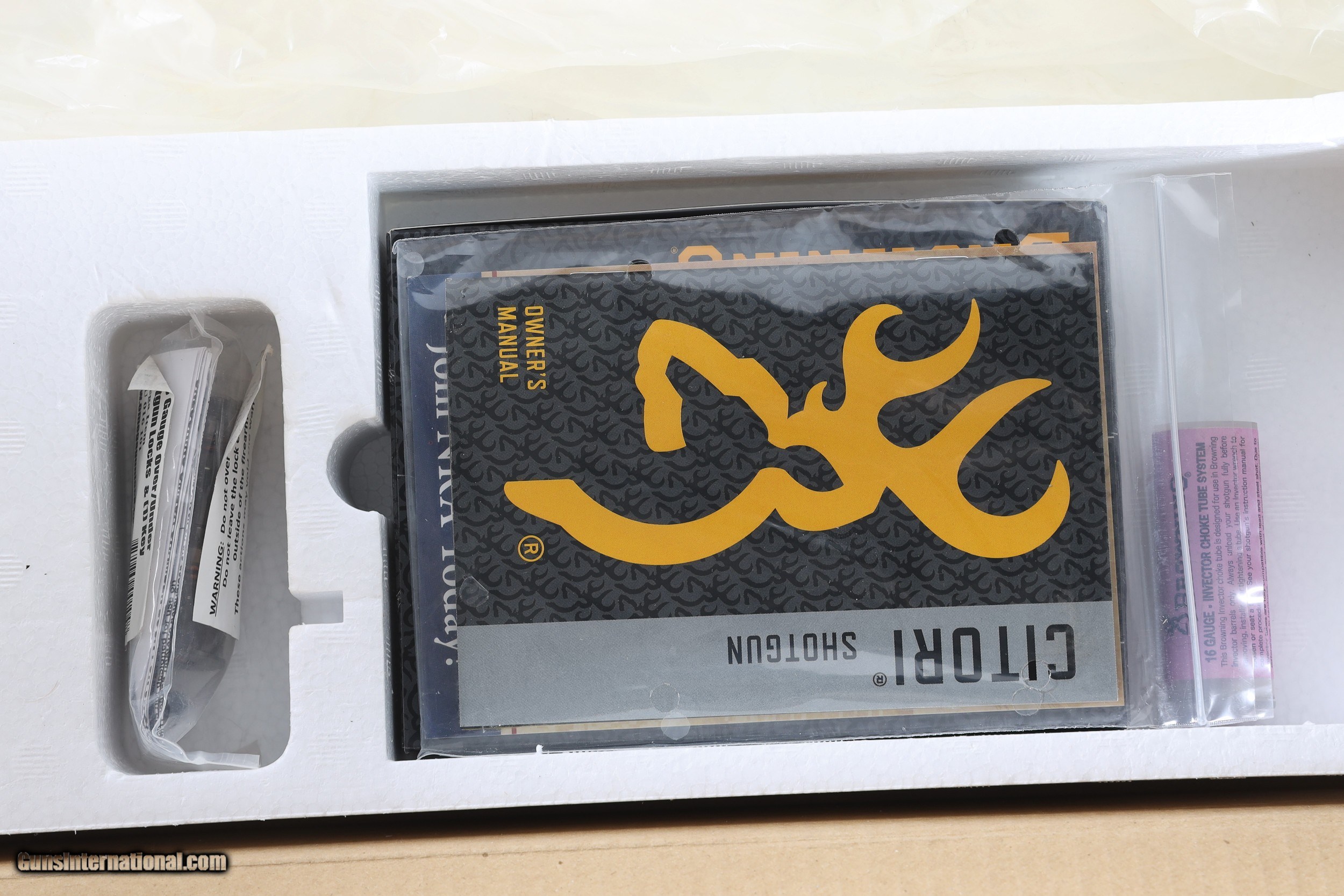 Description: Excellent plus overall condition, appears unfired. Manufactured in Japan. With matching factory box, manual, additional choke tube, and two Omega internal chamber locks. LOP:14", 2 3/4" chambers, choke tube system (improved cylinder/improved cylinder installed). • Free Shipping, No Credit Card Fees. • Lay-a-way available for this firearm. • 1/3 Down, a 1/3 in 30 Days 1/3 in 60 Days. SOLD Manufacturer: Browning Model: Citori White Lightning Serial Number: 22236ZP131 Barrel Length: 26 |