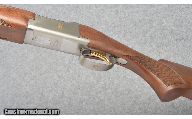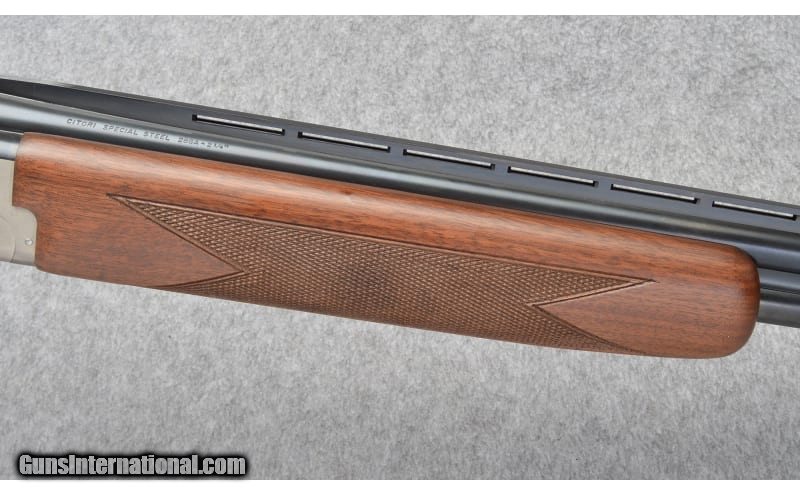 Description: The White Satin features a chrome lined chamber, back-bored barrel, hammer ejectors and top-tang barrel selector/safety. Includes polished blued barrels, Silver Nitride finished receiver with Browning logo and oil finished checkered walnut stock and forearm. Limited edition Citori built in cooperation with Browning and major firearm's wholesaler Davidson's. Factory new display firearm exhibits few minimal handling marks on the stock, light staining in the lower receiver. Factory box, 28 Gauge SOLD Chambers: 2 3/4 Bore Condition: NEW Barrels: 28 Inch Triggers: Single Select Stock Dimensions: 14 1/2" LOP Fore End: "Rounded Tip, Checkered Walnut Butt Pad: Browning Recoil Pad Weight: 7 lbs 3 oz Sights: Vent Rib Chokes: "Full, Mod. & IC Invector Choke Tubes Item Location: Buda, TX |