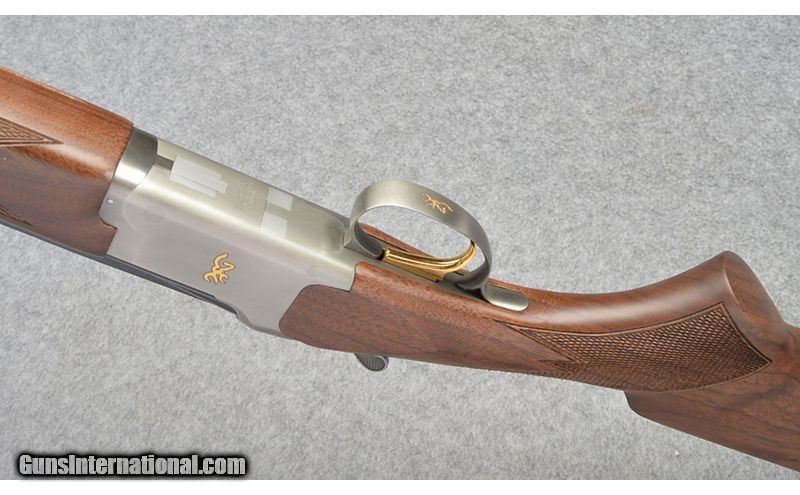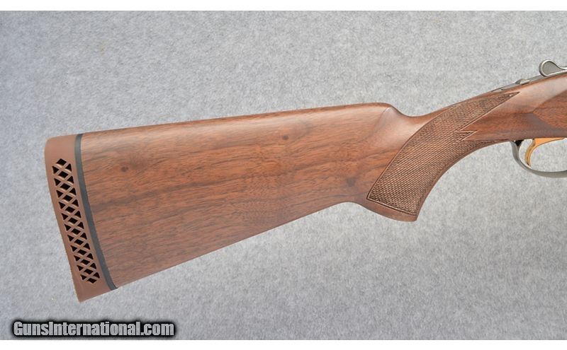Description: The White Satin features a chrome lined chamber, back-bored barrel, hammer ejectors and top-tang barrel selector/safety. Includes polished blued barrels, Silver Nitride finished receiver with Browning logo and oil finished checkered walnut stock and forearm. Limited edition Citori built in cooperation with Browning and major firearm's wholesaler Davidson's. NEW in FACTORY CARTON. .410 Bore SOLD Chambers: 3 Inch Metal Condition: NEW Wood Condition: NEW Bore Condition: NEW Barrels: 28 Inch Triggers: Single Select Stock Dimensions: 14 1/4" LOP Butt Pad: Browning Recoil Pad Weight: 7 Lbs 2 Oz. Sights: "Vent Rib, Metal Bead Chokes: "Mod, I.C. Invector Choke Tubes Item Location: Buda, TX |