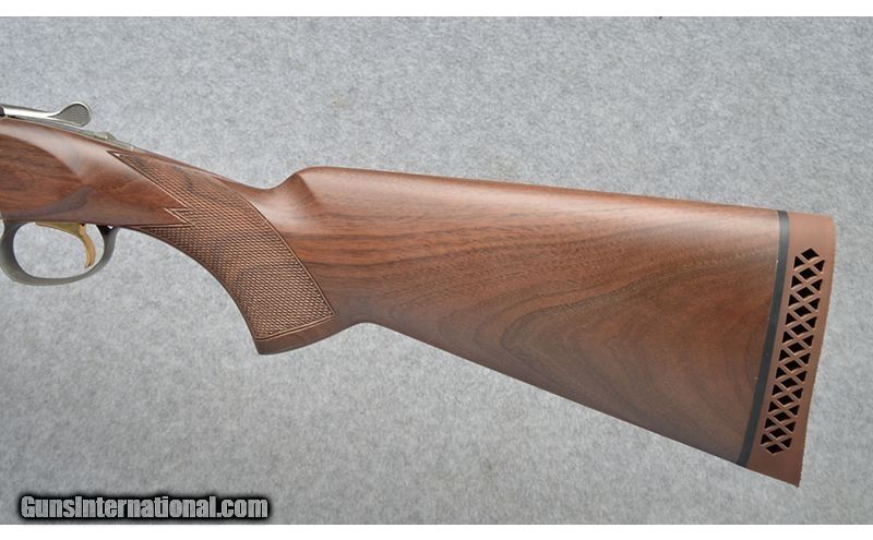 Description: The White Satin features a chrome lined chamber, back-bored barrel, hammer ejectors and top-tang barrel selector/safety. Includes polished blued barrels, Silver Nitride finished receiver with Browning logo and oil finished checkered walnut stock and forearm. Limited edition Citori built in cooperation with Browning and major firearms wholesaler Davidson's. NEW in FACTORY CARTON. .410 Bore SOLD Chambers: 3 Inch Metal Condition: NEW Wood Condition: NEW Barrels: 28 Inch Triggers: Single Select Stock Dimensions: 14 1/4" LOP Butt Pad: Browning Recoil Pad Weight: 7 lbs. 4oz. Sights: "Vent Rib, Metal Bead Chokes: "Mod, I.C. Invector Choke Tubes Item Location: Buda, TX |
