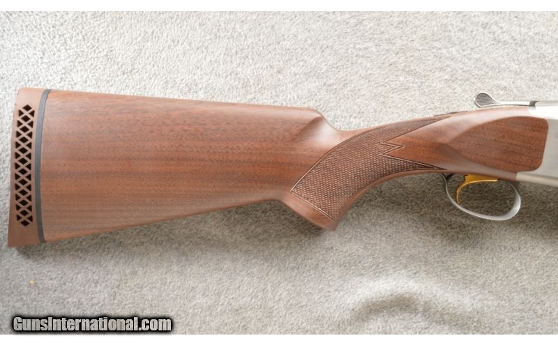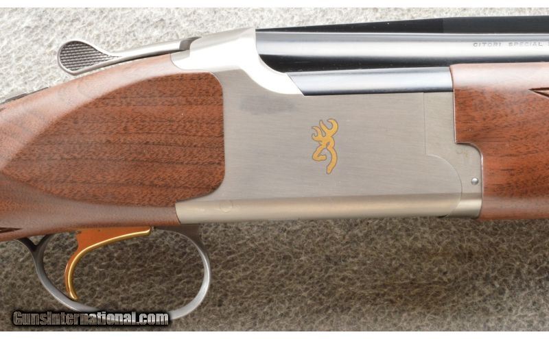 Description: This is a brand new Browning Citori White Satin Hunter 12 gauge shotgun for 2 ¾, 3, and 3 1/2 inch shells. This new shotgun has a very nice satin finished walnut stock and matching forearm. The silver satin finished receiver has an inlayed gold Browning deer and a gold color trigger. This is a distributor over stock shotgun and we are passing the savings on to you. Again this is a new shotgun in the factory box with all the factory accessories. SOLD Manufacturer: New. Caliber Info: 12 Gauge Chambers: 2 3/4, 3, AND 3.1/2 inch Over/Under with ejectors. Metal Condition: New in box. Wood Condition: New in box. Bore Condition: New in box. Barrels: 28 inch blue with a vent rib. Triggers: Single gold color trigger. Stock: Very nice grade II-III or better walnut with a checkered pistol grip and satin finish. Stock Dimensions: 14 ¼ inch LOP. Fore End: Matching grade II-III or better walnut with a satin finish. Butt Pad: Browning brown rubber vented butt pad. Weight: 8 Lbs even. Sights: Single silver color front bead on the vent rib. Chokes: Flush fit Invector Plus choke tubes, FULL. MOD and IC Extras: Comes with the factory box, manual, lock, choke tube wrench and 3 choke tubes Full, Modified and Imp. Cyl. Item Location: Owatonna, MN |