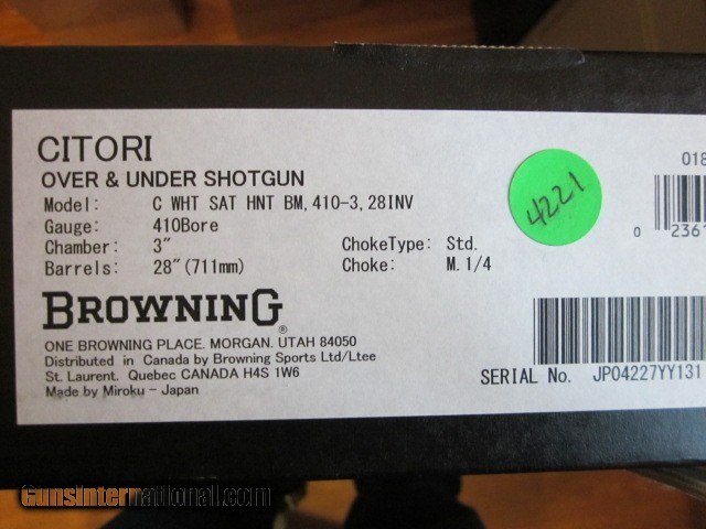 Browning Citori White Satin Hunter .410 ga. 28" new in box Limited