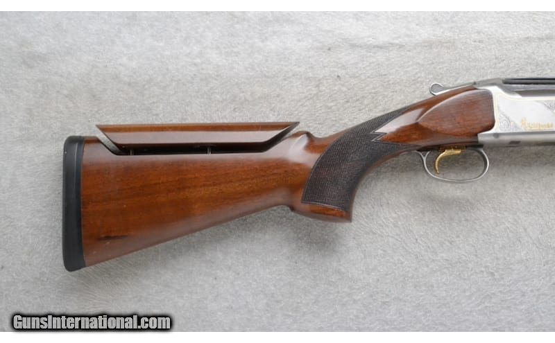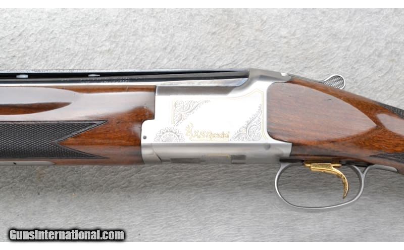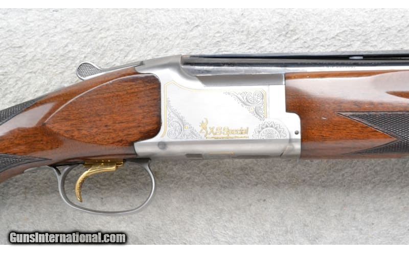 Description: This Browning Model Citori XS Special is an over and under shotgun in 12 Ga. It has 30 inch ported ventilated rib barrels. A green high visibility front sight and a white middle bead sight. With 2 3/4 inch chambers it comes with Invector-Plus choke and comes with choke tubes. It has a SST and is LOP adjustable. The butt stock is a checkered grip walnut pistol grip with an adjustable comb. The forearm is a checkered grip walnut with finger grooves. The receiver is nicely engraved. Made in Japan. 12 Gauge SOLD Chambers: 2 3/4 inch. Metal Condition: Good. Barrel has some light freckling spots. Wood Condition: Good. Some light handling marks. Bore Condition: Shiny. Barrels: 30 inch ported ventilated rib barrels. Triggers: SST. LOP adjustable. Stock Dimensions: LOP 14 1/4 inches. Fore End: Checkered grip walnut with finger grooves. Butt Pad: Browning black rubber recoil pad. Weight: 7 Lb. 14 Oz. Sights: Green high visibility front. White middle bead. Chokes: Invector-Plus Choke. Comes with choke tubes. Item Location: Richfield, WI |