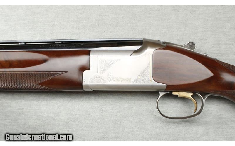 Description: Browning Citori XS Special 12 Gauge shotgun. This shotgun was made by Miroku in Japan for Browning. It is an Over/Under, Top Break Shotgun with Ejectors & Single Selective Trigger. The receiver has a Coin finish with Gold accented and high relief engraving. It has 30-inch ported barrels. It has white center bead and red bead on muzzle and the top of the ventilated rib is finely serrated to reduce glare. The stock is two-piece checkered fancy grain walnut. The bores are bright. Original box included. 12 Gauge SOLD Chambers: 2 3/4 Inches Metal Condition: Excellent Wood Condition: Excellent Bore Condition: Bright Barrels: 30 Inches Triggers: Factory adjustable gold Stock Dimensions: LOP 14 1/2 Inches Fore End: Checkered walnut Butt Pad: Rubber pad Weight: 8 lbs 4 oz Sights: "Front fiber optic, center white bead on ventilated rib Chokes: "Midas Grade Invector-Plus™ choke tubes, SK/SK Item Location: La Vista, NE |