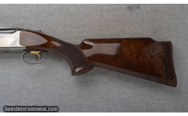 Description: This Browning Model Citori XT is an Over and Under shotgun in 12 Ga. It has 30 inch ported ventilated rib barrels with ejectors. A green tube high visibility front sight and a white bead middle sight which is broken off. With a 2 3/4 inch chamber it has Invector-Plus Choke. The SST is LOP adjustable and comes with 3 different trigger styles. The butt stock is a checkered grip high gloss walnut pistol grip. The forearm is a checkered grip high gloss walnut with finger grooves. 12 Gauge SOLD Chambers: 2 3/4 inch. Metal Condition: Excellent. Wood Condition: Excellent. A couple of very minor use marks. Bore Condition: Shiny. Barrels: 30 inch ported ventilated rib barrels with ejectors.. Triggers: SST. LOP adjustable. Comes with 3 different styles. Stock Dimensions: LOP 14 1/2 inches. DAC 1 1/2 inch. DAH 1 3/8 inch to top of recoil pad. Fore End: Checkered grip walnut with finger grooves. Butt Pad: Browning brown rubber recoil pad. Weight: 8 lb. 13 oz. Sights: Green tube high visibility front. White middle bead is broken off. Chokes: "Invector-Plus Choke. Comes with IM, M & IC choke tubes. Item Location: Richfield, WI |