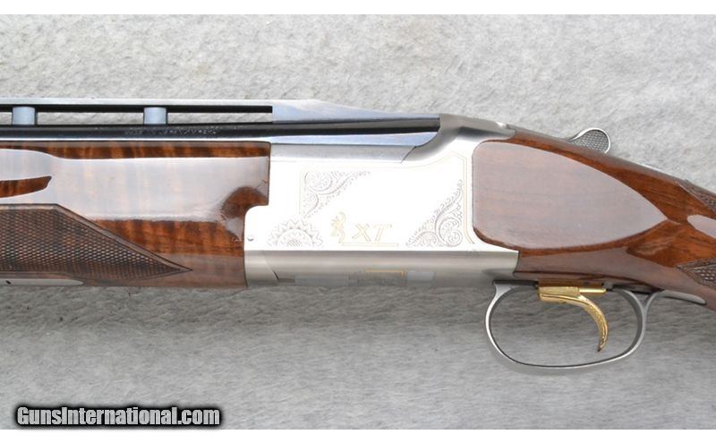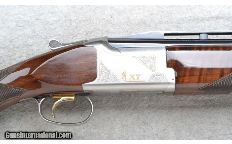 Description: This Browning Model Citori XT is an Over and Under shotgun in 12 Ga. It has 30 inch ported ventilated rib barrels with ejectors. With a 2 3/4 inch chamber it has Invector-Plus choke and comes with a Full and Modified choke tube. A green high visibility front sight and a white middle bead sight. The SST is LOP adjustable. The butt stock is a checkered grip walnut pistol grip. The forearm is a checkered grip walnut with finger grooves. The stainless steel receiver is lightly engraved and has a little gold inlay. 12 Gauge SOLD Chambers: 2 3/4 inch. Metal Condition: Excellent. Wood Condition: Excellent. Bore Condition: Shiny. Barrels: 30 inch ported ventilated rib barrels with ejectors. Triggers: SST. LOP adjustable. Stock Dimensions: LOP 14 1/2 inches. DAC 1 1/2 inch. DAH 1 3/4 inch. Fore End: Checkered grip walnut with finger grooves. Butt Pad: Browning brown rubber recoil pad. Weight: 9 lb. 0 oz. Sights: Green high visibility front. White middle bead. Chokes: Invector-Plus Choke. Comes with a Full and Modified choke tube. Item Location: Richfield, WI |