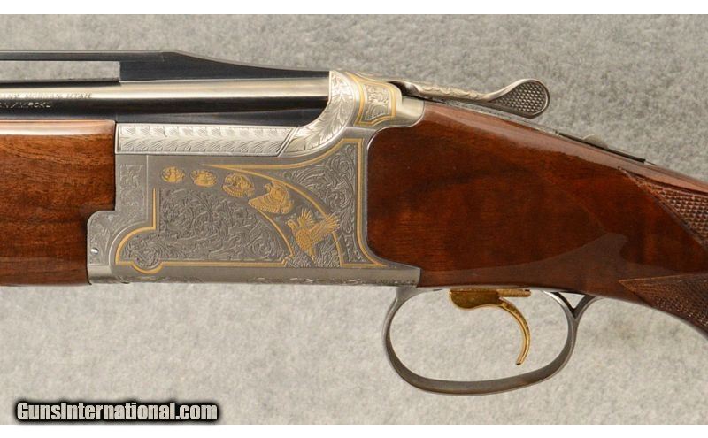 Description: Sales Tax on Gun Library Online Orders Cabela's Gun Library Online is a part of Cabela's Retail, Inc. Any purchase from the Gun Library Online will be subject to sales tax if shipment is made to a state in which Cabela's Retail, Inc has an active physical presence. Sales taxes will be charged based on the state and local sales-tax rates where the gun is delivered. SOLD Manufacturer: 2007 Caliber Info: 12 Gauge Chambers: 2 3/4 Metal Condition: Excellent Wood Condition: Excellent Bore Condition: Excellent Barrels: 32" Ported barrels Triggers: Gold plated single selective trigger Stock: Grade V/VI American walnut checkered pistol grip with adjustable comb and adjustable GraCoil recoil reduction system Stock Dimensions: Adjustable Fore End: Semi-beavertail checkered Grade V/VI American walnut Butt Pad: Browning waffle-style recoil pad Weight: 9 lbs. 11 ozs. Sights: High Post ventilated rib with white mid bead and fiber optic front sight Chokes: Set of choke tubes, SK, IMP CYL, MOD, FULL, CYL Extras: With Browning hard case. Features intricate "Golden Clays" engraving with game bird/clay bird transition. Item Location: Garner, NC |