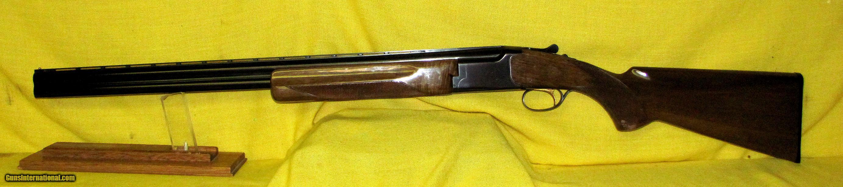 Description: BROWNING model CITORI in 20 GA CAL., with 26" barrel. Color BLUE. BROWNING MODEL CITORI, OVER AND UNDER SINGLE BEAD VENT RIB FIXED CHOKES IMPROVED AND MODIFIED BARREL, SINGLE TRIGGER, WALNUT PISTOL GRIP STOCK AND FOREARM IN EXCELLENT CONDITION, MIRROR BORE, 98% FACTORY FINISH. OUR NEW STOCK # D31744 Condition 98%. Serial number 13445N57. SOLD |