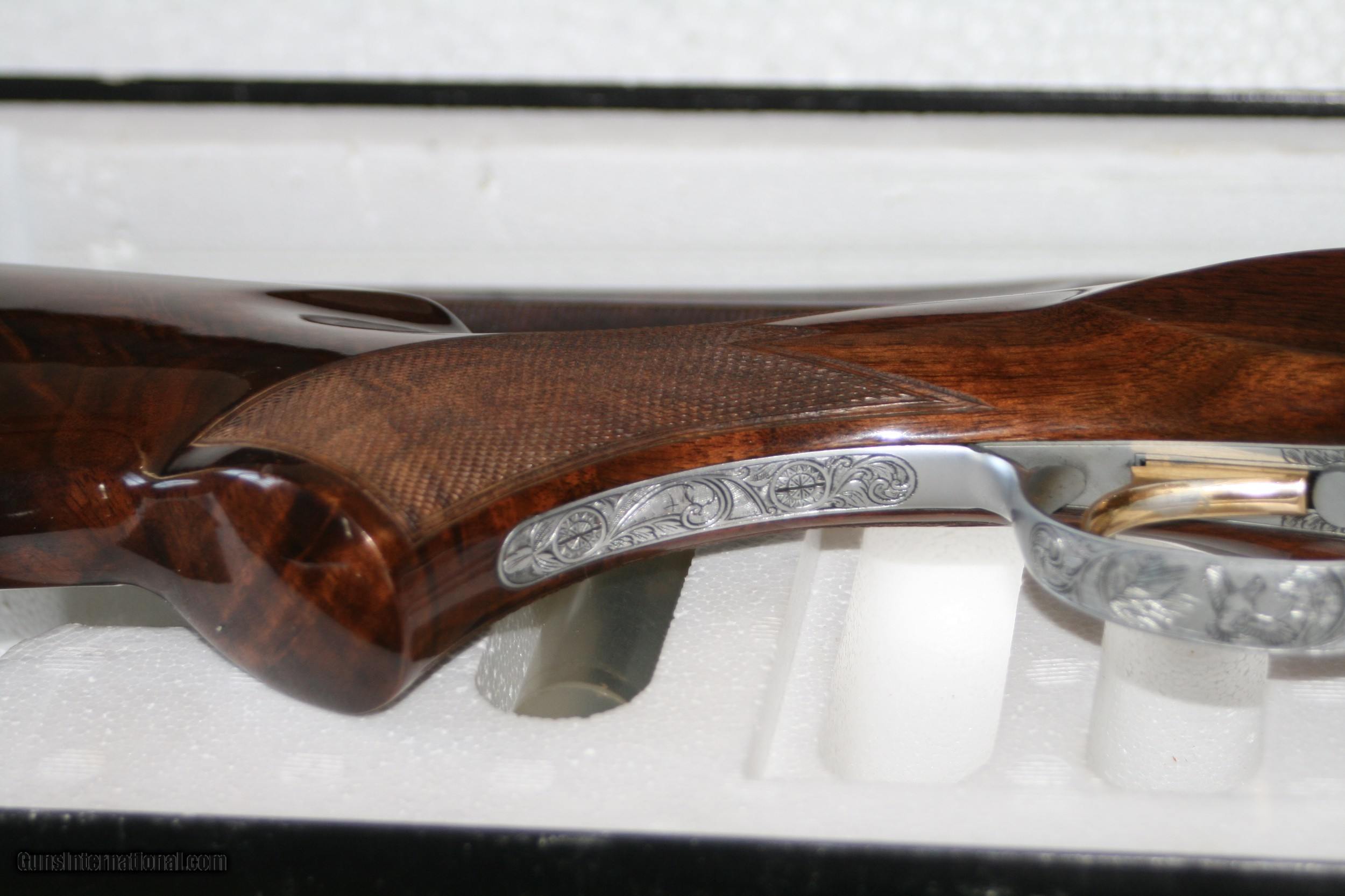 Description: Browning Grade 5 Citori 20 ga hi rib skeet. The grade 5 is a relatively rare version only made about 4-5 years in the late 70's early 80's. Hand engraved comparable to the the nice Belgium grades vs machine engraved like the grade 6. In tattered box with investor tubes. a couple handling marks and small scratches. PW makes this one 1984. 5C3 sn code confirms grade 5 Special Skeet. $3295 plus S&H SOLD Manufacturer: Browning Model: Citori special skeet Serial Number: 5c3pwxxx Caliber Info: 20 |
