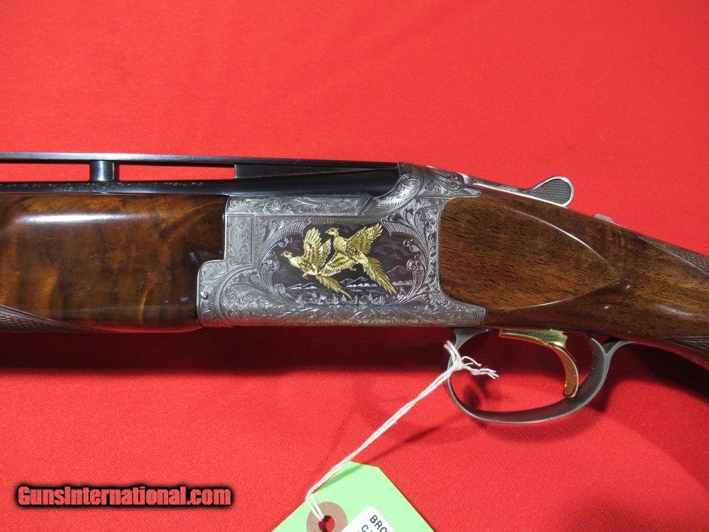 Description: Browning Grade VI Skeet 410ga/28" SK/SK -- All factory original and excellent condition showing virtually no sign of use: highly figured walnut stock with beavertail forearm, coin finished receiver with gold game scenes, high post rib, fixed SKEET chokes. SOLD |
