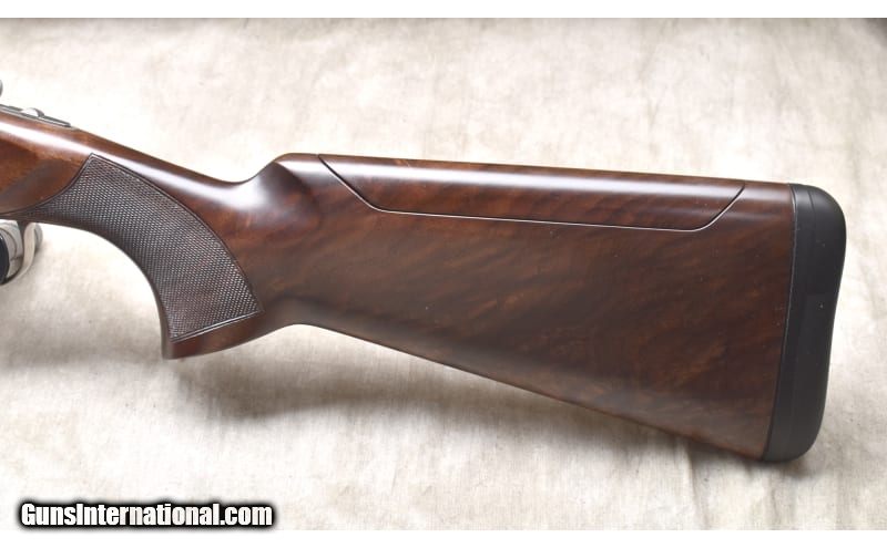 Description: This Special Buy Sporting Clays shotgun features replaceable trigger shoes with adjustment for LOP from 14-1/4 to 15 inches. It has a dark walnut stock with adjustable comb and a matching forearm. It does not appear to have been fired much if at all having a stiff hinge pin and no set back ring on the standing breech. The barrels are shiny and bright. It has been refurbished by Browning factory technicians. 12 Gauge SOLD Chambers: "12 gauge, 2-3/4 and 3 inch Metal Condition: Excellent. Wood Condition: Excellent. Bore Condition: Shiny and bright. Barrels: 30 inch ported Triggers: Factory adjustable trigger Stock Dimensions: 14-5/8 inc LOP as shown Fore End: Matching dark walnut with slight Schnabel. Butt Pad: Soft rubber pad. Weight: 7 lb - 13 oz Sights: Ventilated rib with fiberoptic and white beads. Chokes: Extended InvectorDS screw-in chokes. Item Location: Rogers |