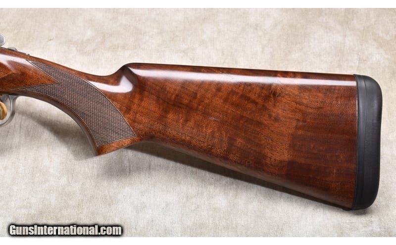 Description: This 725 is a special buy from Browning and was factory reconditioned. it features very nice walnut stock with nice figure. The 30-inch barrels are ported and outfitted with Invector DS chokes. The receiver flats are engraved nearly 100% 20 Gauge SOLD Chambers: "2 rounds, 2-3/4 or 3 inch Metal Condition: Excellent. Wood Condition: Excellent. Bore Condition: Shiny and bright. Barrels: 30 inch Triggers: Factory gold trigger. Stock Dimensions: 14 to 14-1/2 inches LOP Fore End: Well-matched walnut with a slight Schnabel. Butt Pad: Soft rubber pad. Weight: 7 LB Sights: High vent rib with fiberoptic and white beads provided. Chokes: "Interchangeable screw-in Invector DS chokes, True Cylinder and Improved Cylinder provided. Item Location: Rogers |