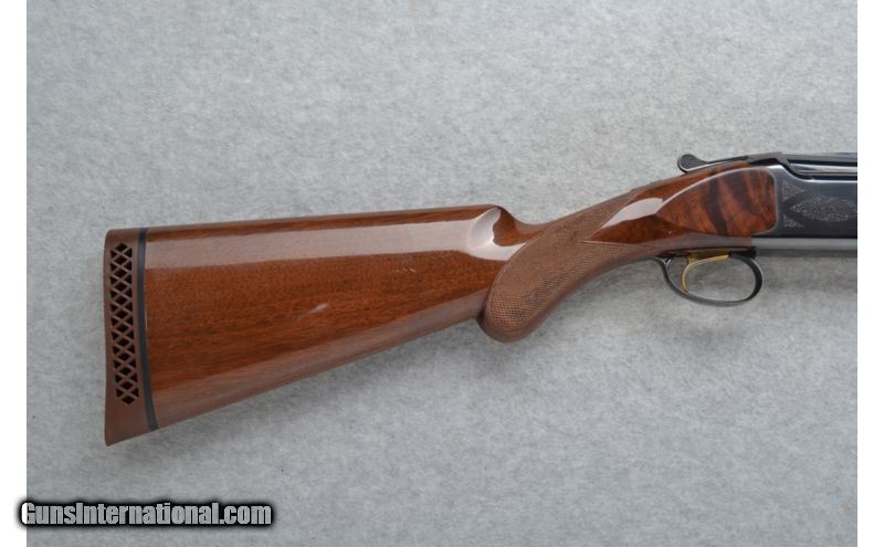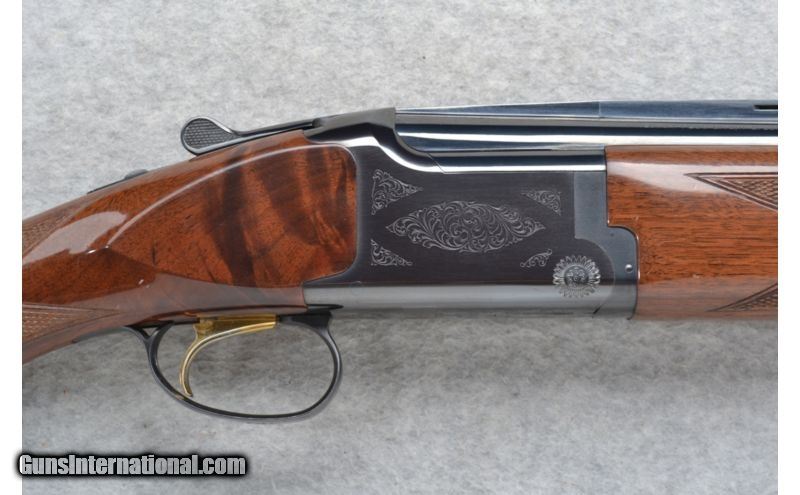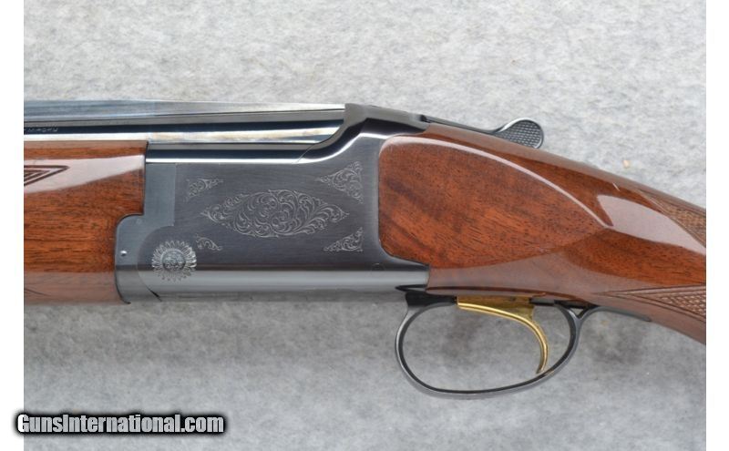 Description: Lightly engraved receiver. SOLD Manufacturer: Made in Japan. Caliber Info: 12 GA Chambers: 2 3/4 inch and 3 inch. Metal Condition: Excellent. Minor handling / use marks. Wood Condition: Excellent with some minor handling marks. Bore Condition: Bright and shiny. Barrels: 28 inches with a ventilated rib. Triggers: Single gold. Stock: Checkered grip walnut round knob. Stock Dimensions: LOP 14 1/8 inches. Fore End: Checkered walnut grip. Butt Pad: Browning rubber recoil pad. Weight: 8 lbs. 0 oz. Sights: Brass bead front followed by a 2.5 inch high visibility bar. Chokes: Invector-Plus tubes. Item Location: Richfield, WI |