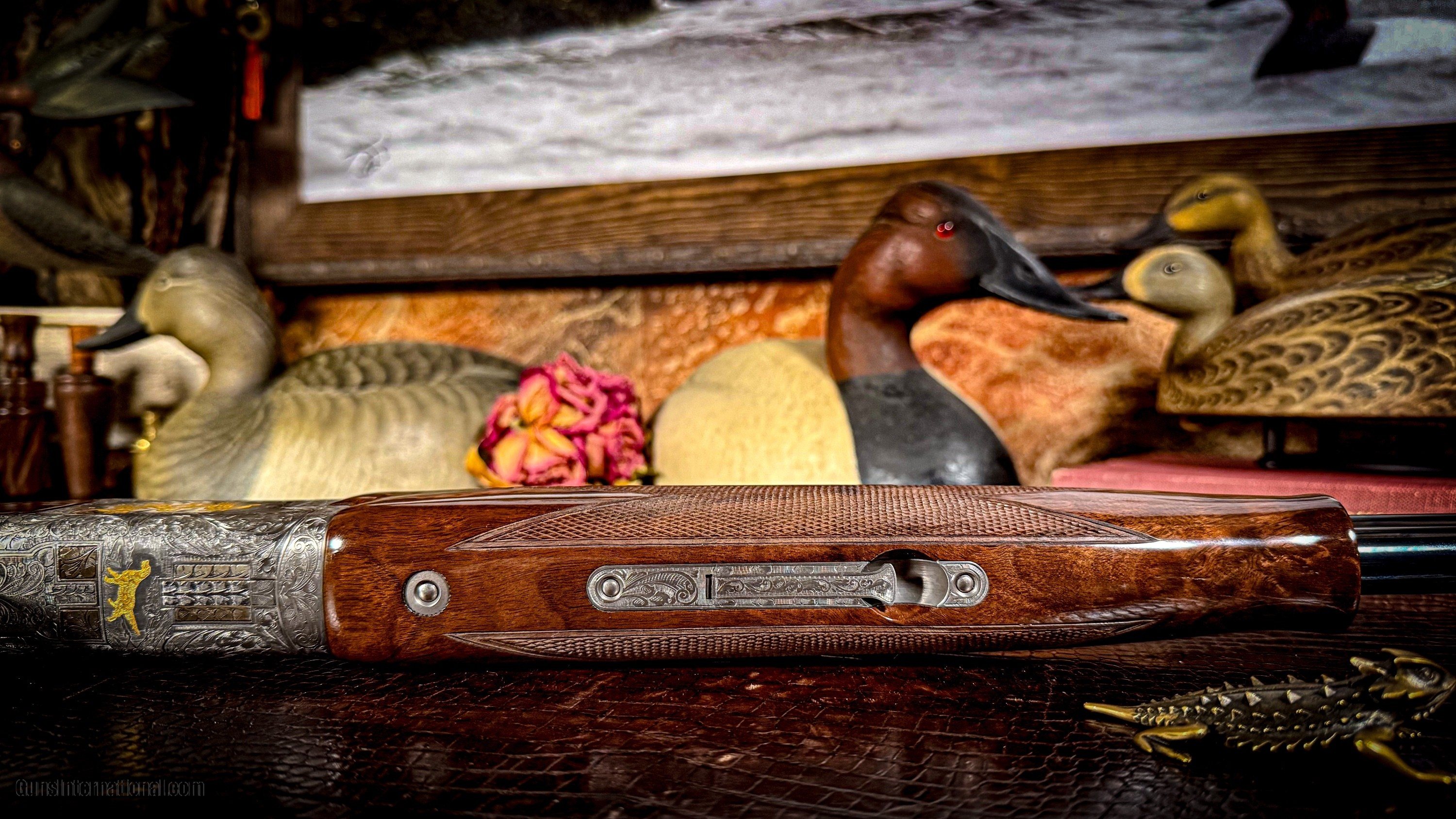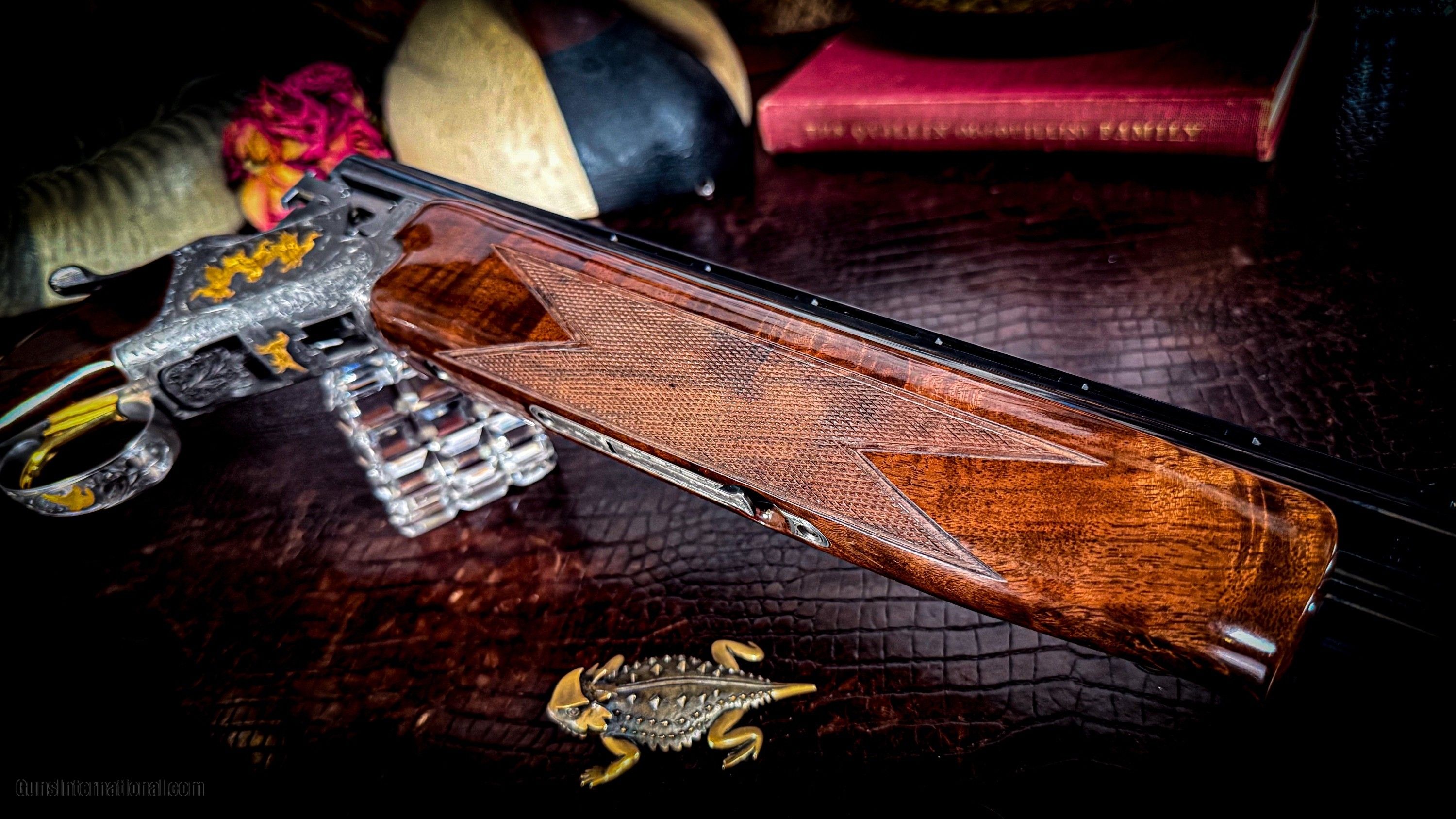 Shotgun Gauge: 20 Gauge Manufacturer: BROWNING Model: SUPERLIGHT GRADE VI CITORI Serial Number: 28557PRF33 Barrel Length: 26” Chambers: 2 3/4 Ejectors: CRISP Condition: SPLENDID — MINIMAL GUN SAFE OR FIELD IMPRESSIONS ON GLOSS FINISH RIGHT SIDE OF STOCK Metal Condition: EXCELLENT Wood Condition: SPLENDID Triggers: GOLD TRIGGER RETAINS 99% Stock: ENGLISH GRIP SUPERLIGHT Stock Comb: 1 1/2 Stock Heel: 2 1/4 Stock Cast: SLIGHT RIGHT HAND Fore End: SCHNABEL Butt Pad: BROWNING BUTTPLATE LOP: 14 1/4 Finish: BROWNING GLOSS Weight: 6 LBS 4 OZS Chokes: INVECTOR Extras: ORIGINAL BOX Price: $8,995.00 Buy Now Contact Seller |