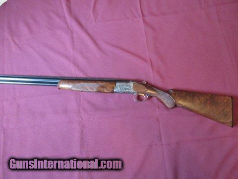 Description: Custom Browning Citori .20 Gauge , 26 " barrels , 3 ", Invector Plus Choke Tubes . Custom deep relief hand engraved by former Browning Master Engraver Ron Reimer . High relief ducks , pheasants , woodcock , and quail . High Grade American Walnut Stock and Forearm . 14 1/2 " LOP .This 2006 gun is in excellant condition and comes in original box . SOLD |