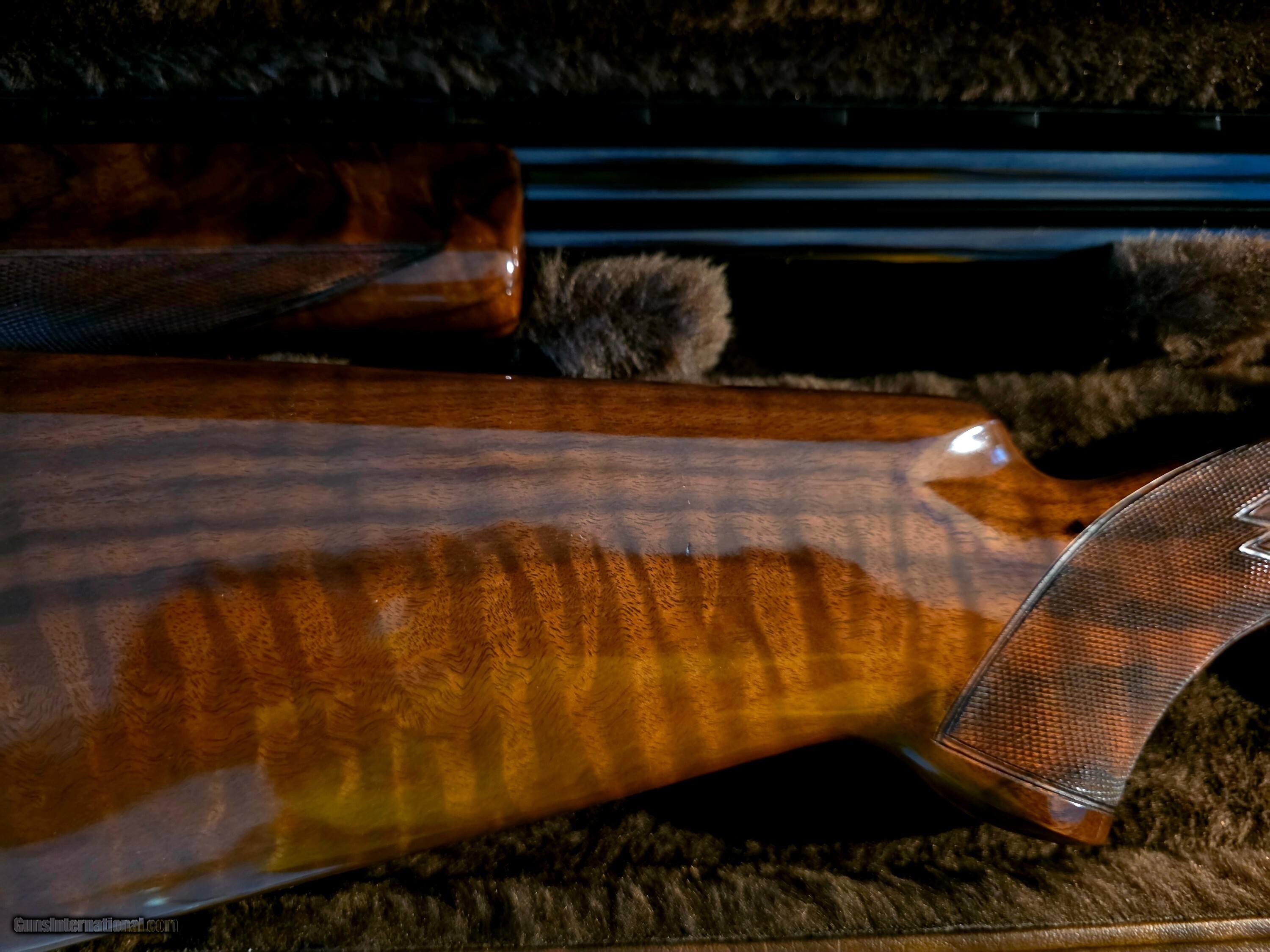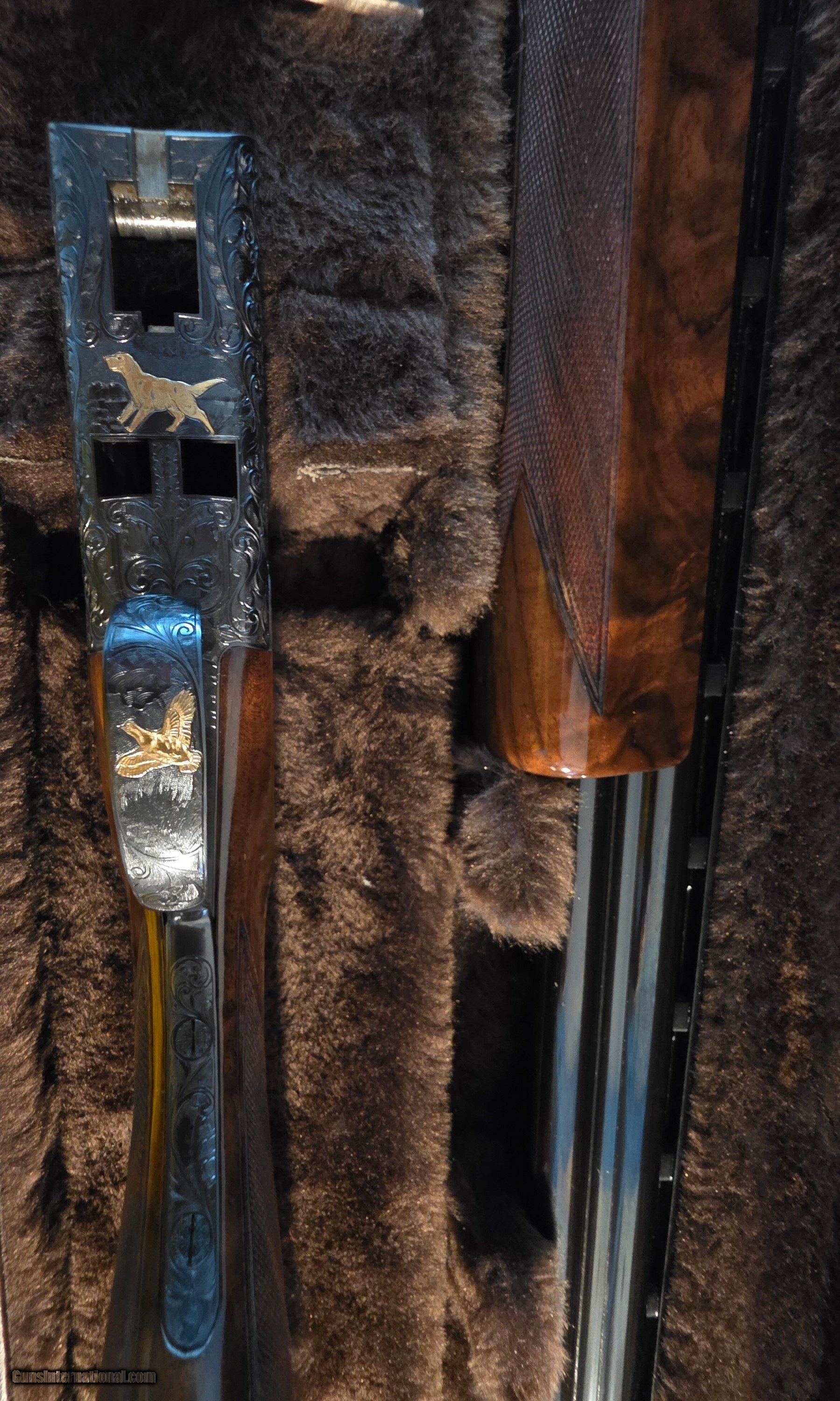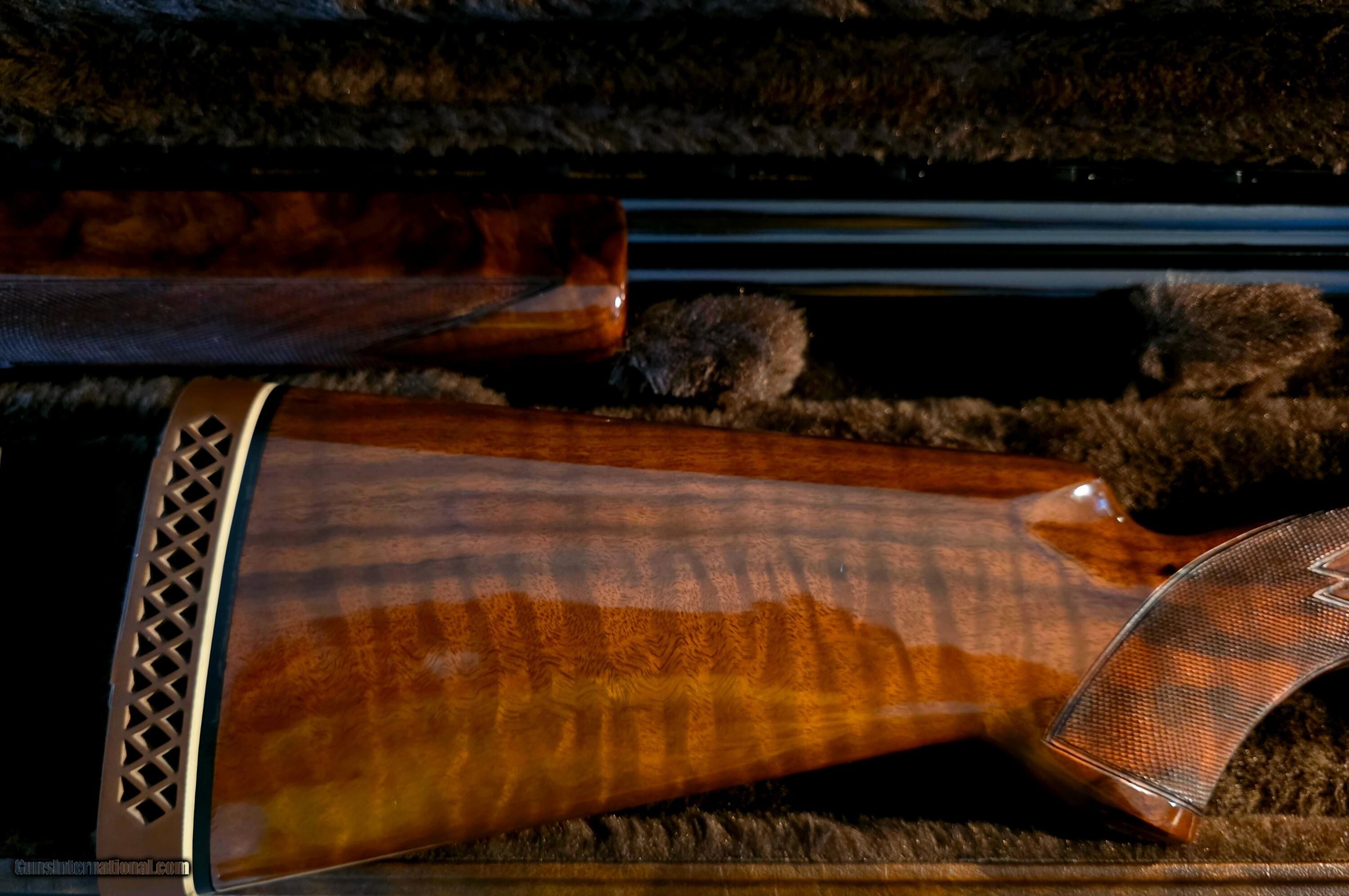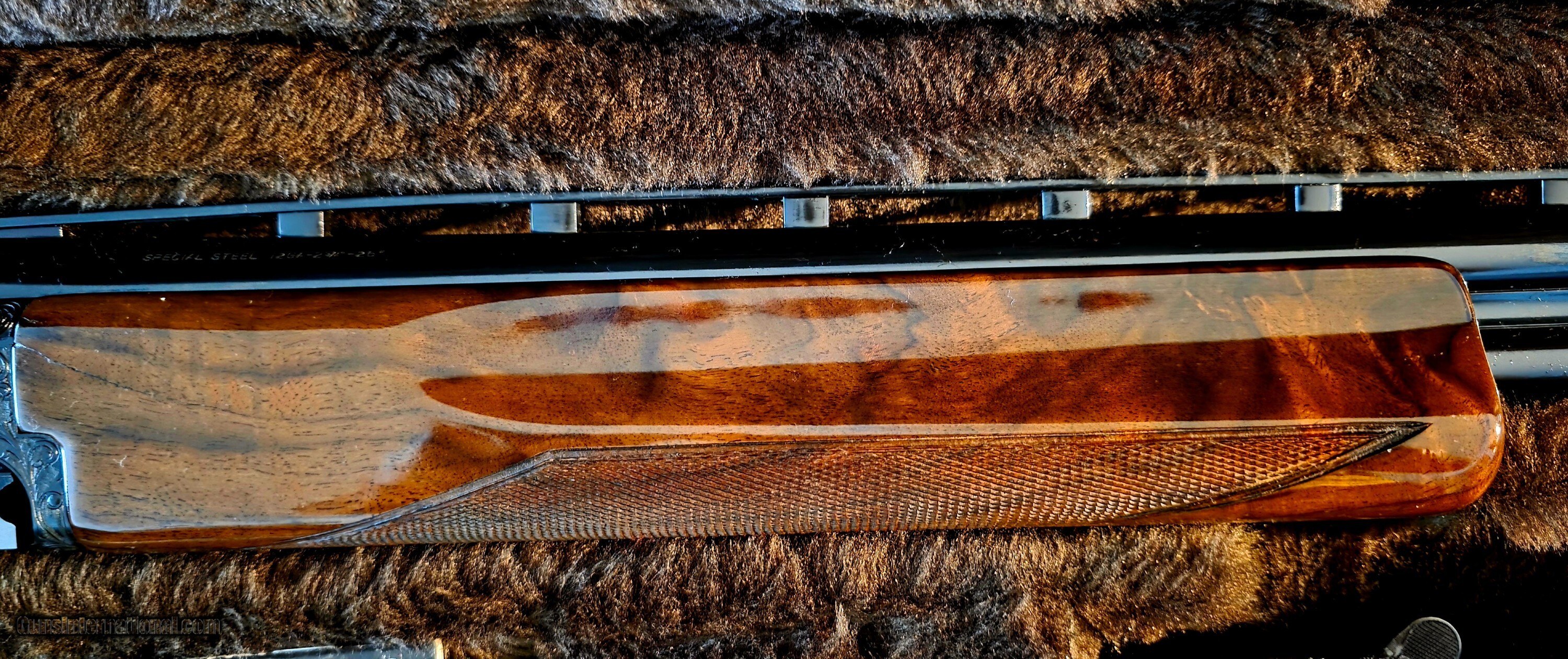 Description: KOTEE RIVER CLASSIC ARMS IS OFFERING THIS BEAUTIFUL NIB EARLY PRODUCTION BROWNING GRADE VI ALL FACTORY HAND ENGRAVED CITORI. THESE EXTREMELY RARE INVESTMENT GRADE BROWNINGS RARELY COME AVAILABLE FOR PURCHASE . THIS GRADE VI 12 GAUGE CITORI FEATURES BEAUTIFUL DEEP RELIEF HAND ENGRAVING BY T.KATAOKA, WITH 7 STUNNING GOLD INLAYS OF PHEASANTS, DUCKS, A GROUSE AND AN OUTSTANDING GUN DOG.AS EVERYONE SHOULD LOVE AN OUTSTANDING GUN DOG ! T.KATAOKA IS A HIGHLY RESPECTED AND RENOWNED BROWNING FACTORY MASTER ENGRAVER. IT HAS 26" INCH HIGHLY POLISHED FACTORY BLUED BARRELS WITH IVORY MID AND FRONT BEADS AND DEEP RELIEF ENGRAVING. IT ALSO FEATURES A BEAUTIFUL FIDDLEBACK GRAINED WALNUT CHECKERED STOCK AND FOREARM. THIS BEAUTIFUL OVER / UNDER IS IN ABSOLUTELY MINT CONDITION, NIB IN MY OPINION. I SEE NO FLAWS .IT HAS ITS ORGINAL BOX AND IS AVAILABLE WITH AN ERA BROWNING HARD CASE IN ABSOLUTELY EXCELLENT CONDITION FOR AN ADDITIONAL CHARGE. THIS INVESTMENT GRADE BROWNING WOULD MAKE AN OUTSTANDING AND PRIZED ADDITION TO ONES COLLECTION. WE FEEL OUR PHOTOGRARHS ARE HIGHLY DETAILED AND CAPTURE THE TRUE BEAUTY AND HIGHLIGHTS OF THIS STUNNING BROWNING GRADE VI CITORI. THE PRICE IS AVAILABLE ON REQUEST, SERIOUS INQUIRIES ONLY. SHIPPING AND INSURANCE COST ARE ADDITIONAL. CALL KOTEE RIVER CLASSIC ARMS AT 813 235 2232 OR EMAIL KOTEE RIVER CLASSIC ARMS THRU THIS SITE. ALL FIREARMS MUST BE TRANSFERRED AND SHIPPED TO A CURRENT LICENSED FFL DEALER ONLY ,THERE ARE NO EXCEPTIONS. FLORIDA RESIDENTS MUST INCLUDE SALES TAX. THANK YOU FOR YOUR TIME AND VIEWING. Shotgun Gauge: 12 Gauge Manufacturer: BROWNING Model: CITORI GRADE VI Barrel Length: 26 Chambers: 2 3/4" inch Ejectors: EJECTORS Condition: MINT Metal Condition: MINT Wood Condition: MINT Bore Condition: MINT Barrels: HIGH POLISHED FACTORY BLUED Barrel Type: OVER/UNDER Triggers: GOLD Stock: CHECKERED FIDFLEBACK WALNUT Fore End: CHECKERED Butt Pad: FACTORY LOP: 14 1/4 Rib: VENTILATED WITH IVORY MID AND FRONT BEADS Manufacture Date: 1984 Engraving: BEAUTIFUL DEEP RELIEF FACTORY HAND ENGRAVED Extras: ORGINAL BOX Case: HARD CASE AVAILABLE FOR PURCHASE Price: POR Contact Seller |