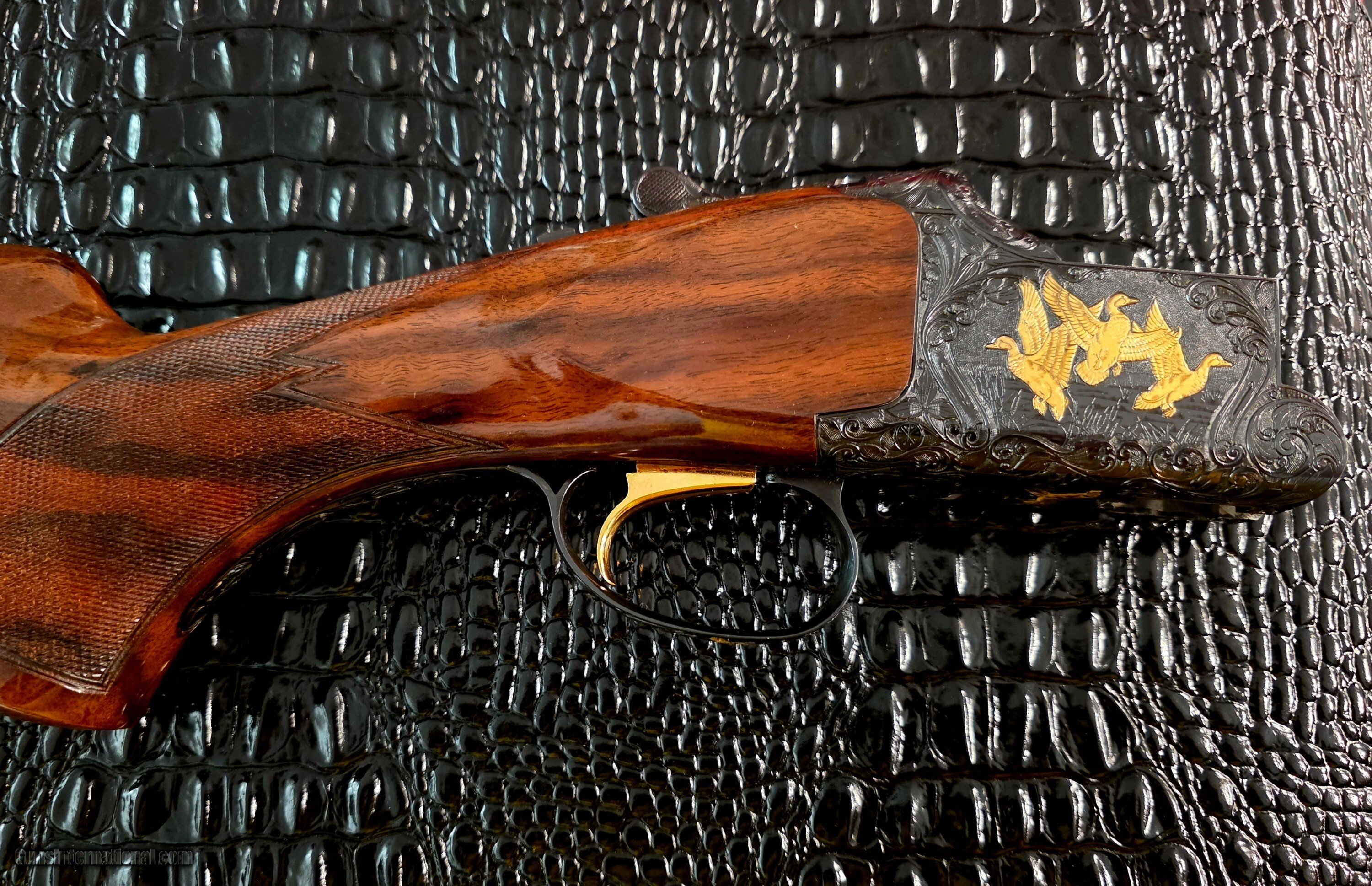 Description: KOTEE RIVER CLASSIC ARMS IS OFFERING THIS BEAUTIFUL NIB EARLY PRODUCTION BROWNING GRADE VI ALL FACTORY HAND ENGRAVED CITORI. THESE EXTREMELY RARE INVESTMENT GRADE BROWNINGS RARELY COME AVAILABLE FOR PURCHASE . THIS GRADE VI 12 GAUGE CITORI FEATURES BEAUTIFUL DEEP RELIEF HAND ENGRAVING BY T.KATAOKA, WITH 7 STUNNING GOLD INLAYS OF PHEASANTS, DUCKS, A GROUSE AND AN OUTSTANDING GUN DOG.AS EVERYONE SHOULD LOVE AN OUTSTANDING GUN DOG ! T.KATAOKA IS A HIGHLY RESPECTED AND RENOWNED BROWNING FACTORY MASTER ENGRAVER. IT HAS 26" INCH HIGHLY POLISHED FACTORY BLUED BARRELS WITH IVORY MID AND FRONT BEADS AND DEEP RELIEF ENGRAVING. IT ALSO FEATURES A BEAUTIFUL FIDDLEBACK GRAINED WALNUT CHECKERED STOCK AND FOREARM. THIS BEAUTIFUL OVER / UNDER IS IN ABSOLUTELY MINT CONDITION, NIB IN MY OPINION. I SEE NO FLAWS .IT HAS ITS ORGINAL BOX AND IS AVAILABLE WITH AN ERA BROWNING HARD CASE IN ABSOLUTELY EXCELLENT CONDITION FOR AN ADDITIONAL CHARGE. THIS INVESTMENT GRADE BROWNING WOULD MAKE AN OUTSTANDING AND PRIZED ADDITION TO ONES COLLECTION. WE FEEL OUR PHOTOGRARHS ARE HIGHLY DETAILED AND CAPTURE THE TRUE BEAUTY AND HIGHLIGHTS OF THIS STUNNING BROWNING GRADE VI CITORI.DOUBLE TAP PICTURES FOR HIGHER RESOLUTION. THE PRICE IS AVAILABLE ON REQUEST, SERIOUS INQUIRIES ONLY. SHIPPING AND INSURANCE COST ARE ADDITIONAL. CALL KOTEE RIVER CLASSIC ARMS AT 813 235 2232 OR EMAIL FROM THIS SITE ALL FIREARMS MUST BE TRANSFERRED AND SHIPPED TO A CURRENT LICENSED FFL DEALER ONLY ,THERE ARE NO EXCEPTIONS. FLORIDA RESIDENTS MUST INCLUDE SALES TAX. THANK YOU FOR YOUR TIME AND VIEWING. Shotgun Gauge: 12 Gauge Manufacturer: BROWNING Model: CITORI GRADE VI Barrel Length: 26 Chambers: 2 3/4" inch Ejectors: EJECTORS Condition: MINT Metal Condition: MINT Wood Condition: MINT Bore Condition: MINT Barrels: HIGH POLISHED FACTORY BLUED Barrel Type: OVER/UNDER Triggers: GOLD Stock: CHECKERED FIDFLEBACK WALNUT Fore End: CHECKERED Butt Pad: FACTORY LOP: 14 1/4 Rib: VENTILATED WITH IVORY MID AND FRONT BEADS Manufacture Date: 1984 Engraving: BEAUTIFUL DEEP RELIEF FACTORY HAND ENGRAVED Extras: ORGINAL BOX Case: HARD CASE AVAILABLE FOR PURCHASE Price: POR Contact Seller |
