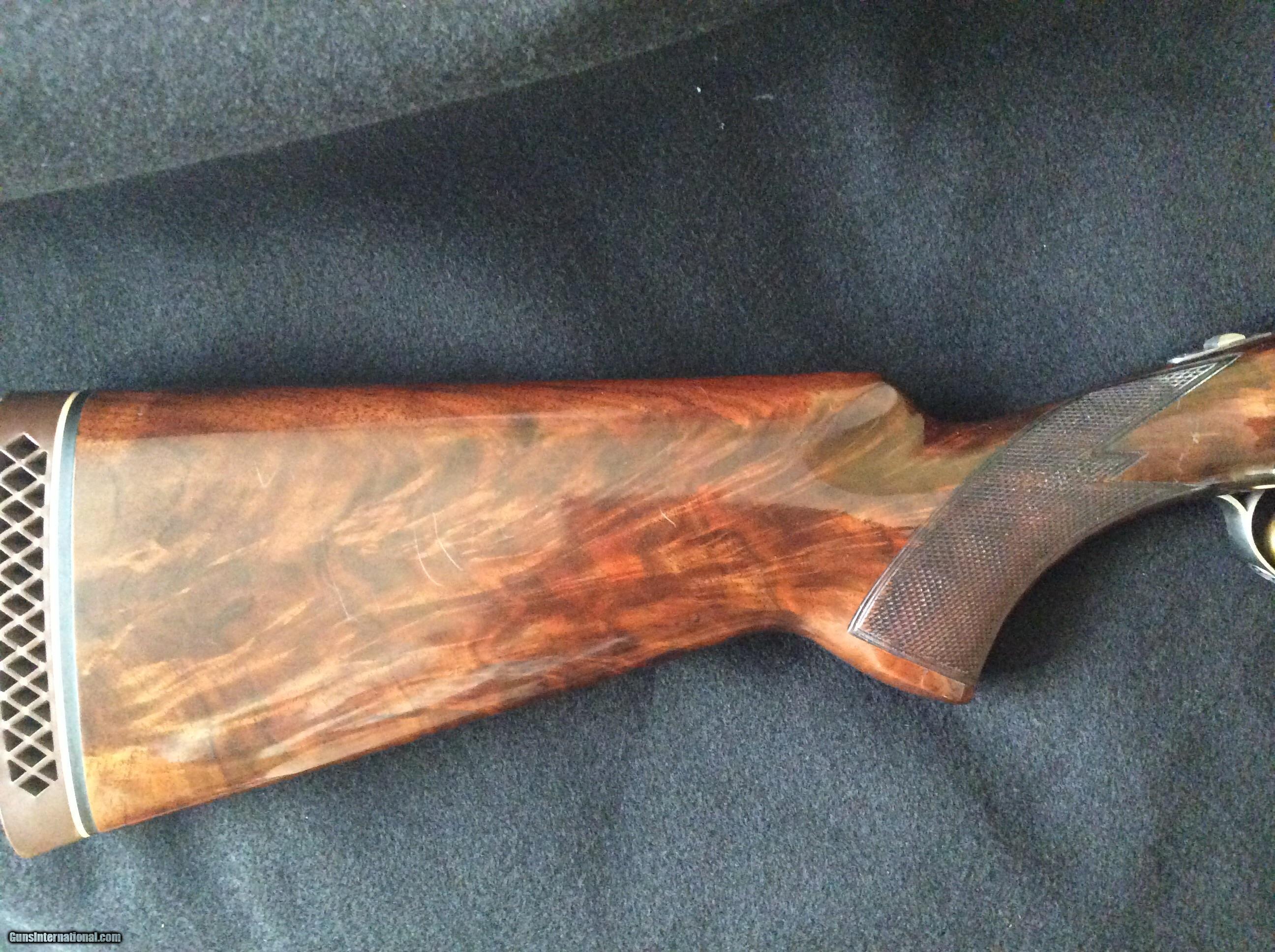 Description: BROWNING 28GA CITORI GRADE VI COIN FINISHED & GOLD GAME SCENE ENGRAVED SHOTGUN - A beautiful well dimensioned shotgun with 26 1/2" vent rib barrels with fixed chokes **$/**$ or Skeet/Skeet. Bores are bright and ejectors strong and in-time. Fabulous figured walnut flat knob stock and forend with the trademark high-gloss finish. 14 3/8" LOP over Browning waffle pad. Single safety selective trigger. All metal is in excellent pluse conditon. Gun appears to be little shot. Some light scatterd handling marks. Not often found in 28ga, this is surely a winner for the shooting fields or as an addition to your collection. Buyer to pay S/H/I. Valid FFL required. Will ship USPS priority mail insured. SOLD Manufacturer: Browning Model: Citori Grade VI Gauge Info: 28 |
