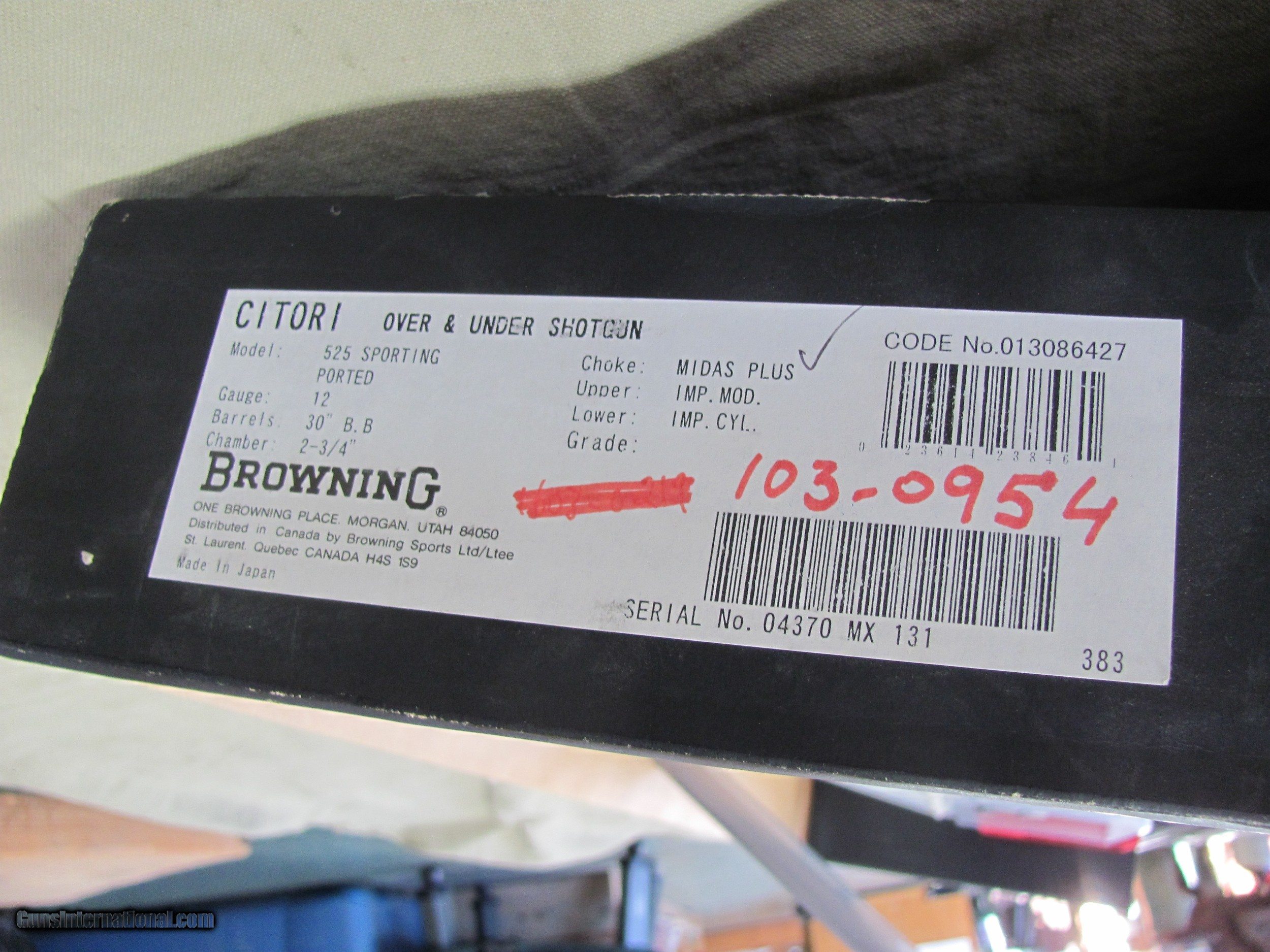 MINT BROWNING CITORI 525 SPORTING CLAYS PORTED 12 GAUGE OVER UNDER SHOTGUN WITH A TOTAL OF 10 CHOKES