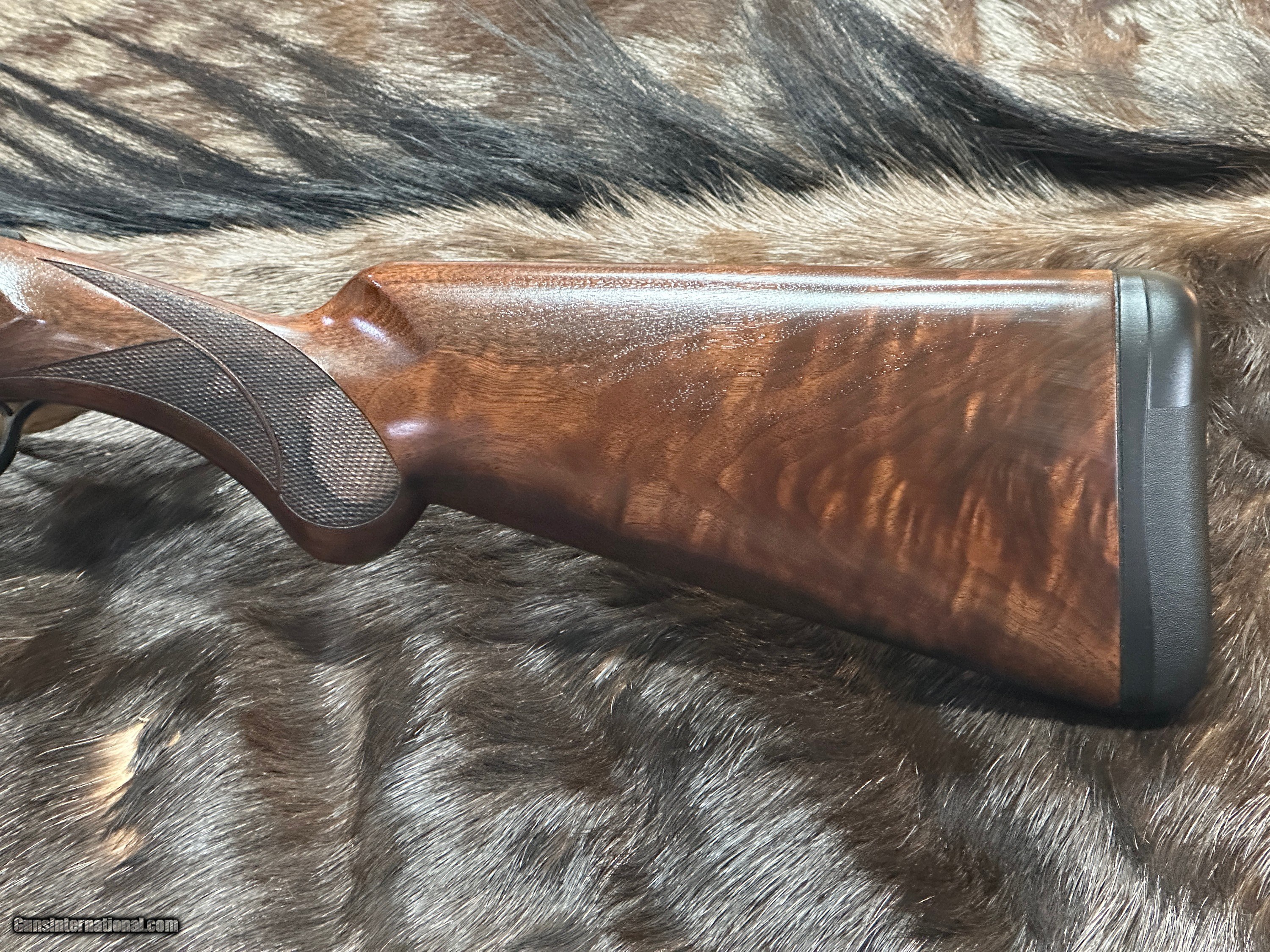 - STOCK: Beautiful Grade VI Black Walnut Lightning-style Stock with Gloss Oil Finish, 18-LPI Checkering, and Rounded (Prince of Wales) Pistol Grip