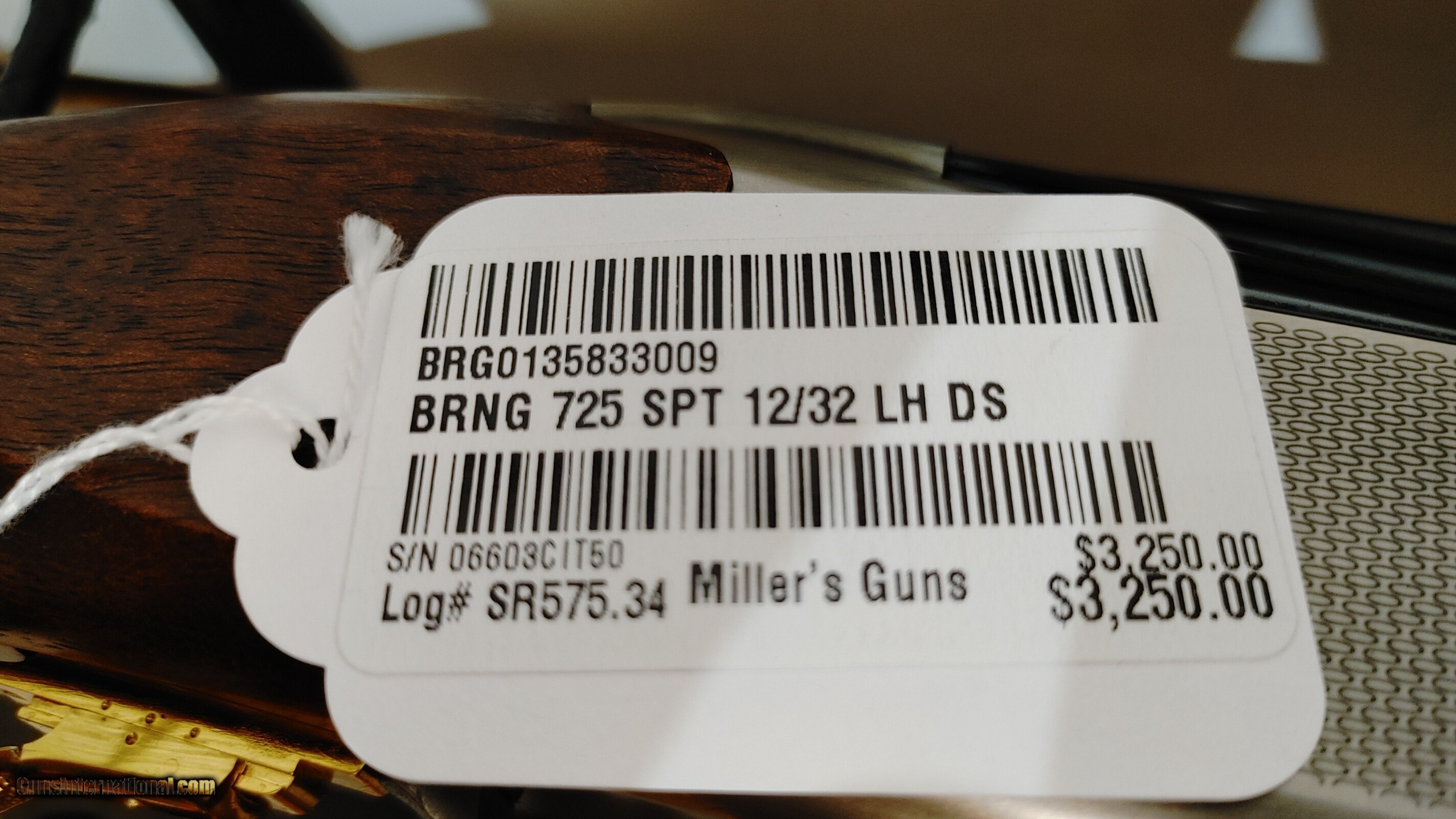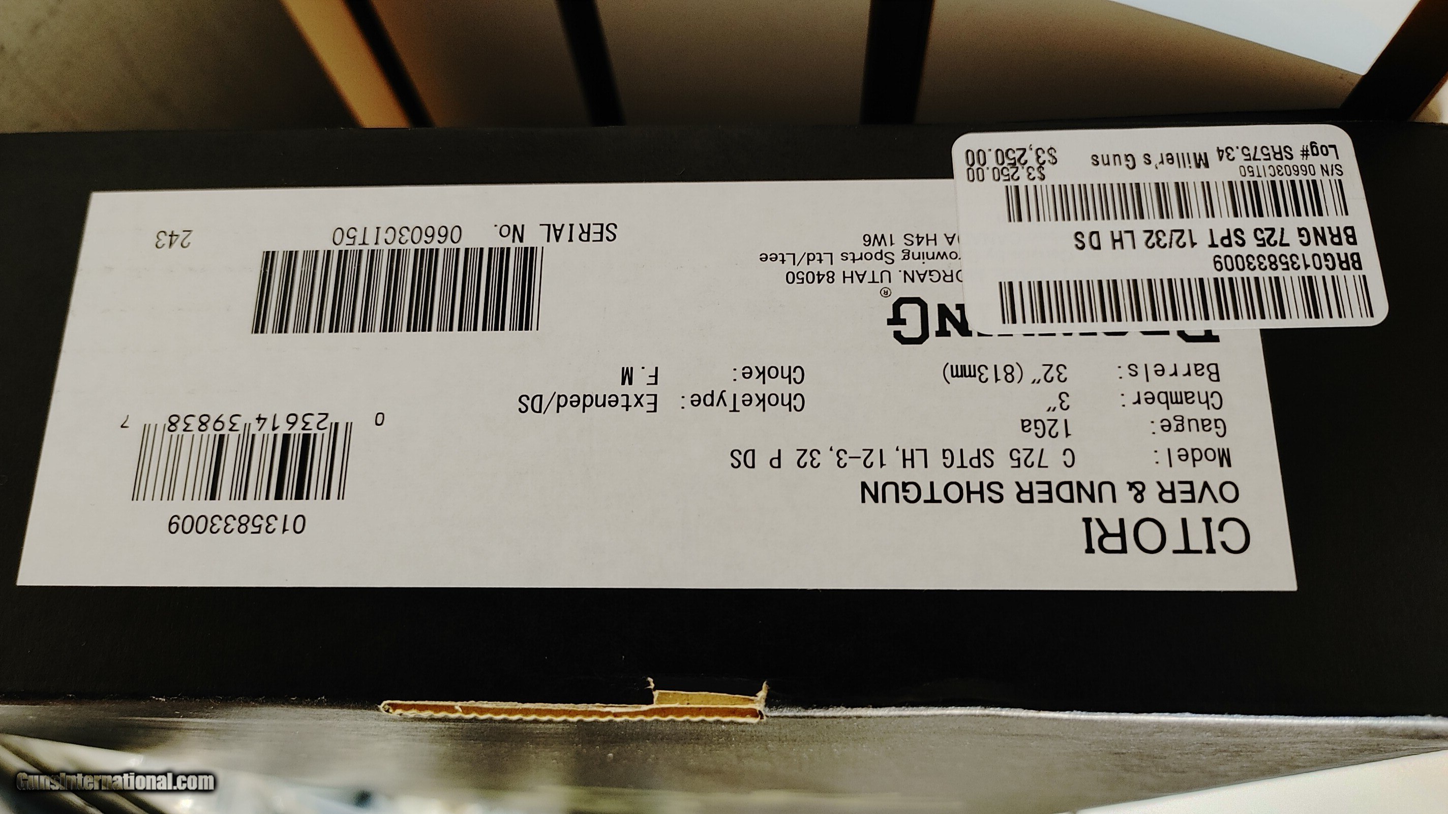 Description: New BRN CIT 725 SPORT LH 12M/32MC new in box CALIBER:12 GAUGE); (MAG CAPACITY:12); (GUN TYPE:SHOTGUN: OVER AND UNDER); (MODEL SERIES:CITORI); (ACTION:OVER + UNDER); (CAPACITY:2); (FINISH:BLUE|SILVER); (STOCK:GLOSS OIL/ TRUE LEFT HAND/ GRADE III/IV WALNUT); (SIGHTS:HIVIZ PRO-COMP SIGHT + IVORY MID BEAD); (BARREL LENGTH:32 PORTED BARREL); (OVERALL LENGTH:50); (FEATURES:TRIPLE TRIGGER SYSTEM/ LEFT-HAND TOP LEVER); (DEPT:LONG) Buyer pays shipping Millers Gun Center Located in New Castle, Delaware "Home of TAX-Free shopping" No Credit Card Fees Send Gun international inquiry and then call 302-328-9747 to complete your purchase SOLD Serial Number: 06603CIT50 |