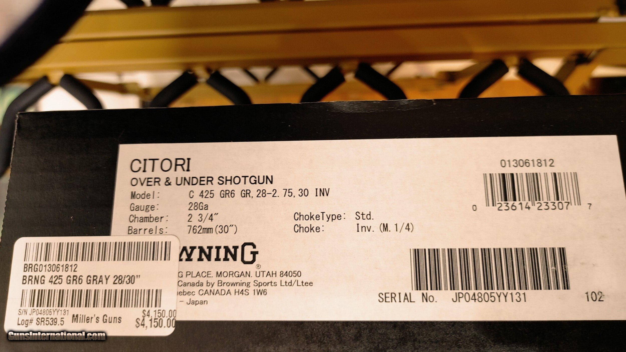 New Browning 425 Grade 6 Gray 28 gauge 30" barrel 4 chokes 3 trigger shoes choke wrench allen wrench lock manual new in box