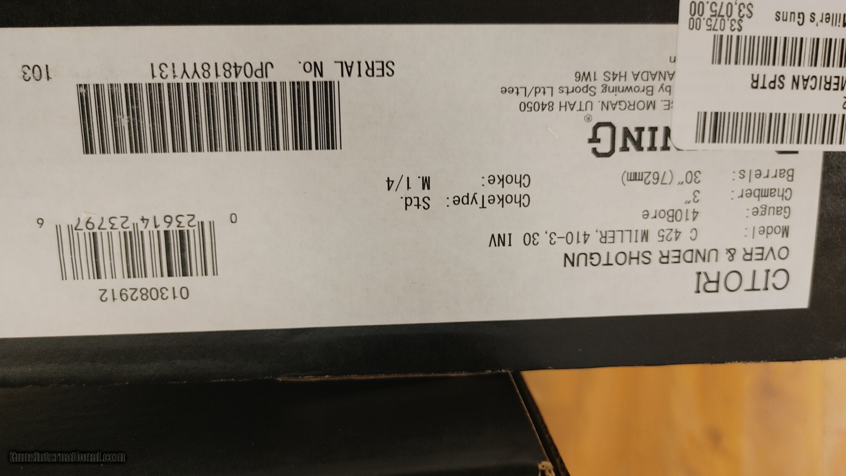 New Browning 425 MIller 410 gauge 3" chamber 30" invector choke 2 ic 1 skt 1 mod 2 extra trigger shoes choke wrench new in box