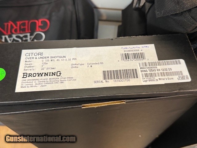 Description: New Browning Citori 725 American Sporter 12 gauge 32" bbl 5 chokes 3 trigger system LOP 14 3/4 with adjustable 3 trigger system wrench tools spare sights new in box 2023 inv Buyer pays shipping Millers Gun Center Located in New Castle, Delaware "Home of TAX-Free shopping" No Credit Card Fees Send Gun international inquiry and then call 302-328-9747 to complete your purchase SOLD Serial Number: 18183CIT50 |