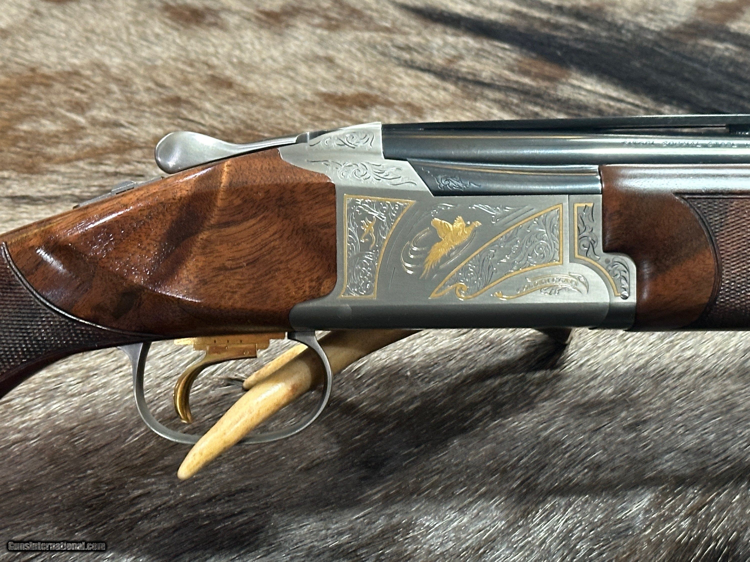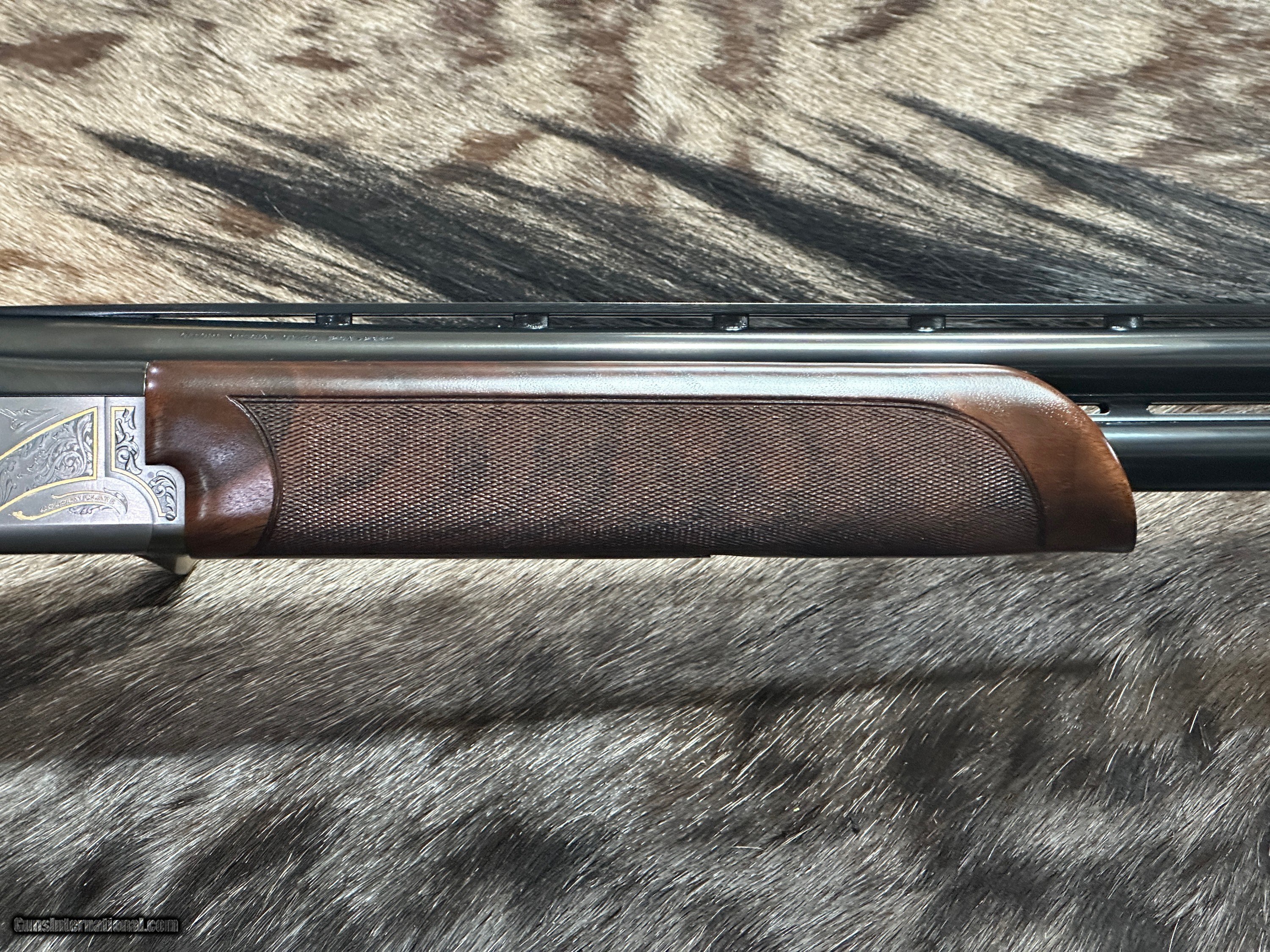 Description: NEW BROWNING CITORI 725 SPORTING GOLDEN CLAYS 12 GA SHOTGUN, PORTED WITH GREAT WALNUT STOCK - LAYAWAY AVAILABLE. UNLIKE OTHER SELLERS, JD OUTFITTERS DOES NOT FALSELY CLAIM TO HAVE “INVENTORY” BUT THEN DROP-SHIPS SOME UNKNOWN AND UNSEEN SHOTGUN FROM A THIRD-PARTY WAREHOUSE. NOR DOES JD OUTFITTERS USE STOCK OR GENERIC PHOTOS. THE SHOTGUN YOU SEE IS IN INVENTORY, READY TO SHIP, AND IS THE SHOTGUN YOU WILL RECEIVE! Unique accented gold engraving is the stand-out feature of this beautiful sporting clays shotgun. Features a Graco Adjustable Comb, ported barrels with vented top and side ribs, Invector-DS extended chokes and beautiful gloss-oil finish Grade VI walnut stock. EXCLUSIVE FEATURES OF THIS GREAT BROWNING OVER/UNDER SHOTGUN INCLUDE: