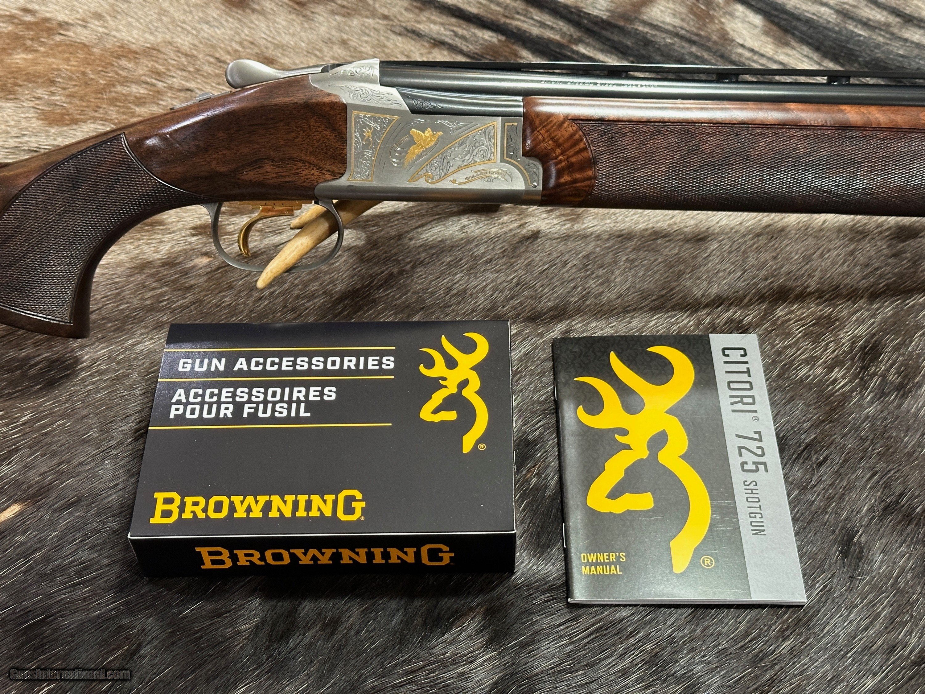 Description: NEW BROWNING CITORI 725 SPORTING GOLDEN CLAYS 12 GA SHOTGUN, PORTED WITH GREAT WALNUT STOCK - LAYAWAY AVAILABLE. UNLIKE OTHER SELLERS, JD OUTFITTERS DOES NOT FALSELY CLAIM TO HAVE “INVENTORY” BUT THEN DROP-SHIPS SOME UNKNOWN AND UNSEEN SHOTGUN FROM A THIRD-PARTY WAREHOUSE. NOR DOES JD OUTFITTERS USE STOCK OR GENERIC PHOTOS. THE SHOTGUN YOU SEE IS IN INVENTORY, READY TO SHIP, AND IS THE SHOTGUN YOU WILL RECEIVE! Unique accented gold engraving is the stand-out feature of this beautiful sporting clays shotgun. Features a Graco Adjustable Comb, ported barrels with vented top and side ribs, Invector-DS extended chokes and beautiful gloss-oil finish Grade VI walnut stock. EXCLUSIVE FEATURES OF THIS GREAT BROWNING OVER/UNDER SHOTGUN INCLUDE: