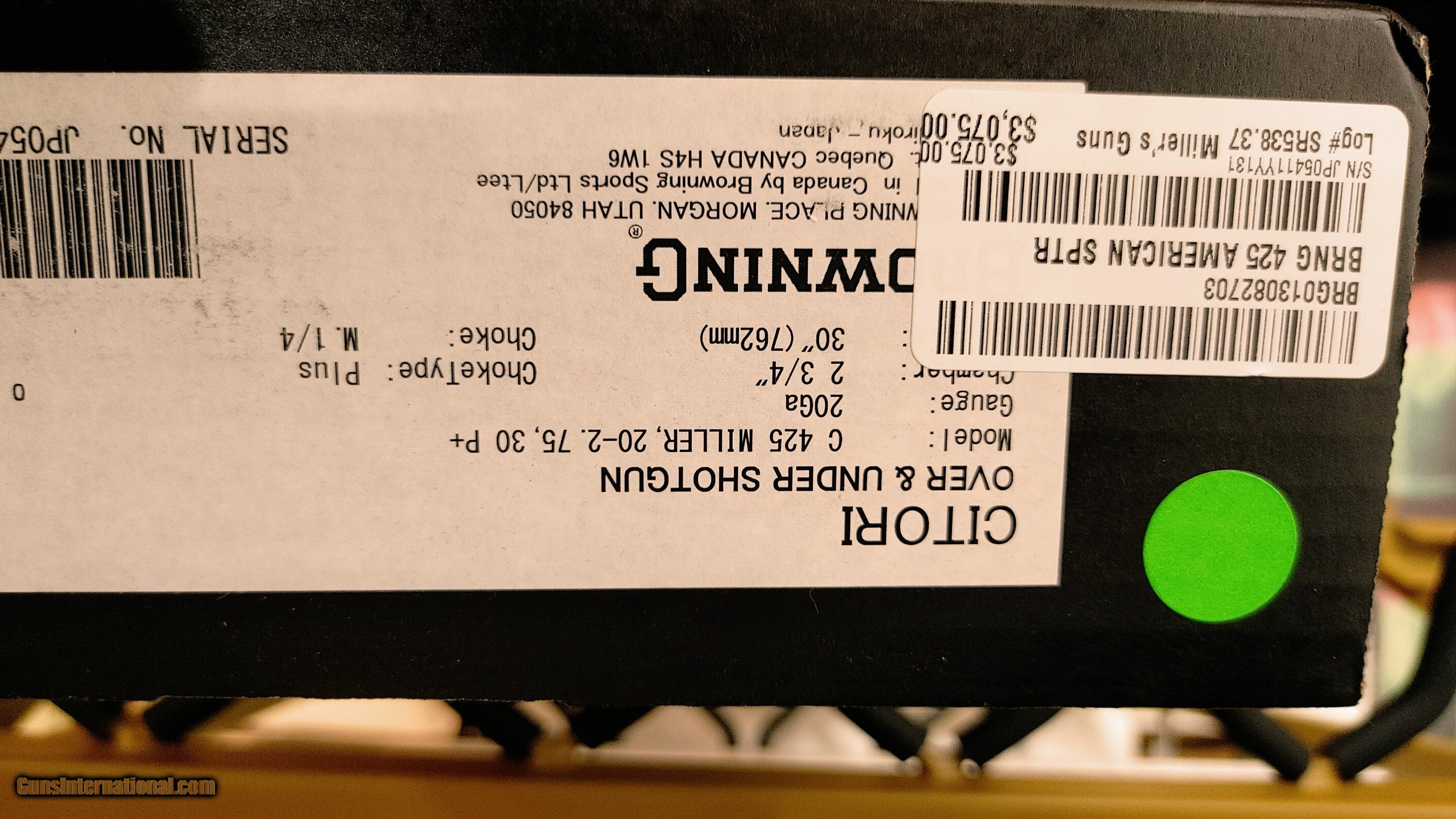 New Browning Citori Miller 425 20 gauge 30" barrel 4 chokes 3 trigger shoes choke wrench Allen wrench lock manual new in box