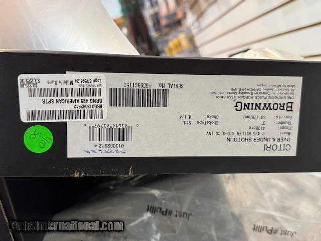 Description: New Browning Citori Miller 425 410 3" chamber 30" bbl 4 chokes 2 IC 1 M 1 F wrench 3 trigger system tools lock new 2023 inventory Buyer pays shipping Millers Gun Center Located in New Castle, Delaware "Home of TAX-Free shopping" No Credit Card Fees Send Gun international inquiry and then call 302-328-9747 to complete your purchase SOLD Serial Number: 16599CIT50 |