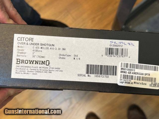 New Browning Citori Miller 425 410-3" 30" 4 chokes 2 IC 1 M 1 F wrench 3 trigger system tools lock new 2023 inventory