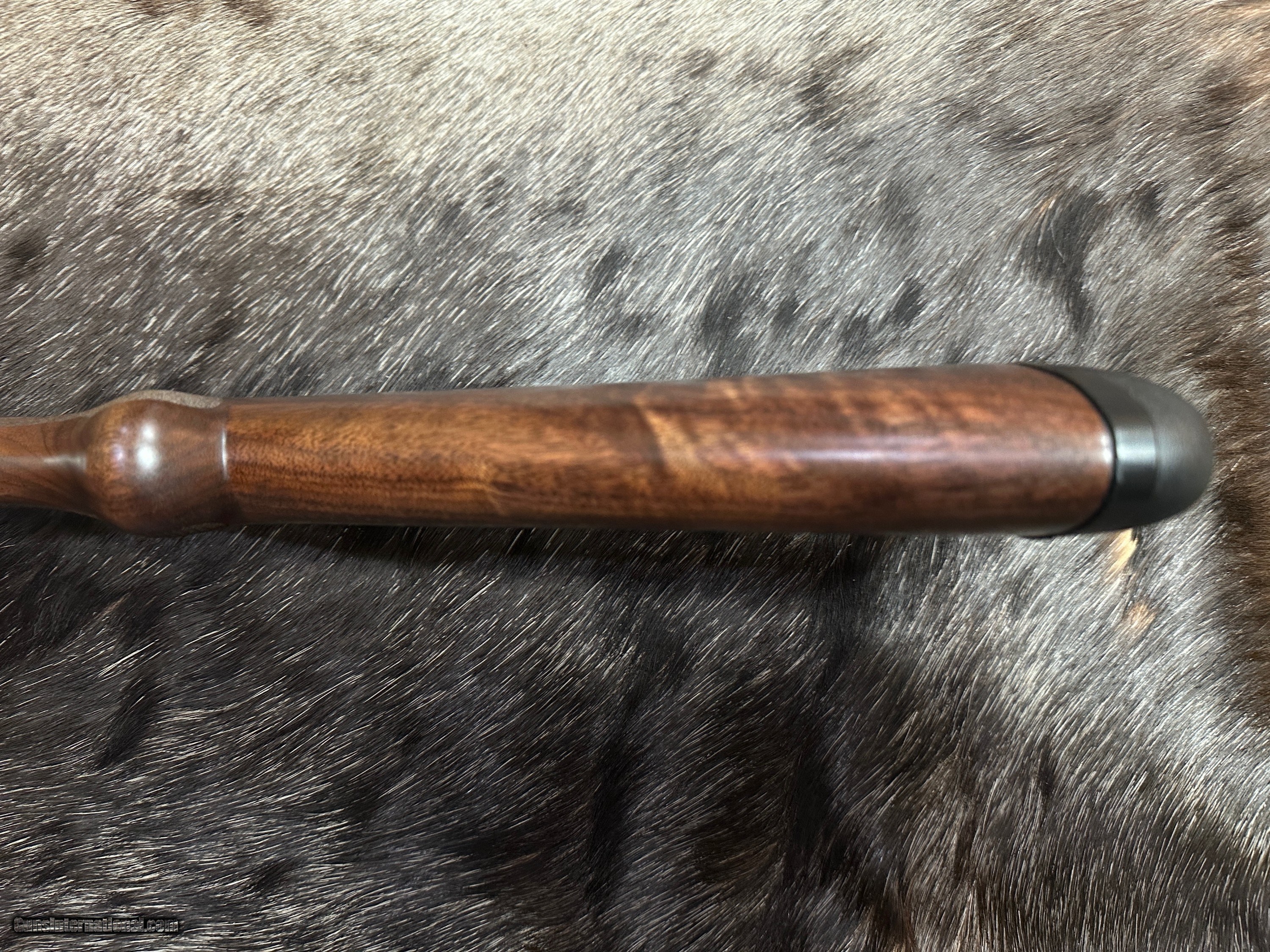 - STOCK: Beautiful Grade IV Black Walnut Lightning-style Stock with Gloss Oil Finish, 18-LPI Checkering, and Rounded (Prince of Wales) Pistol Grip