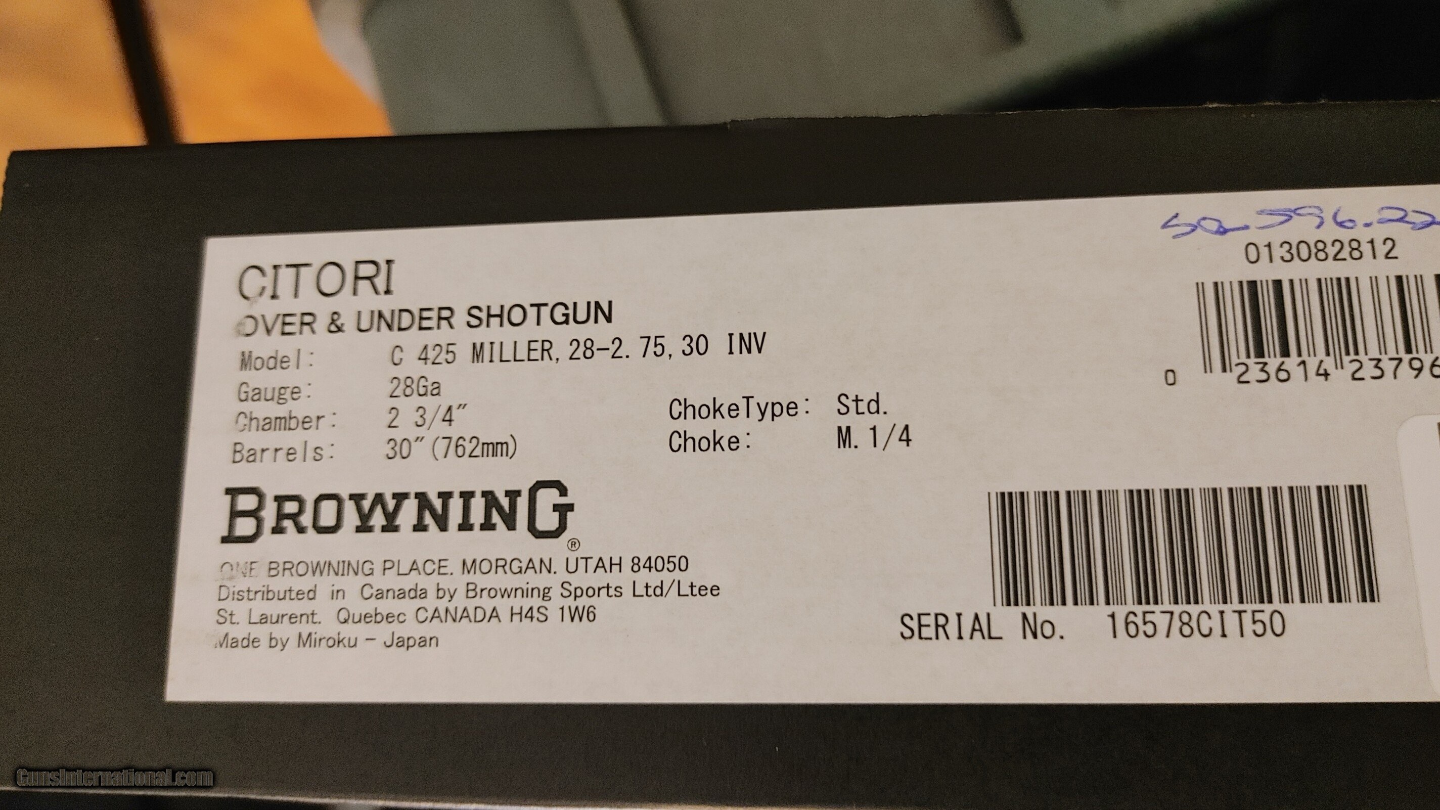 New Browning Miller 425 Sporting grade 2-3 wood custom engraving 28 gauge 30" bbl 4 chokes new in box 2023 inventory
