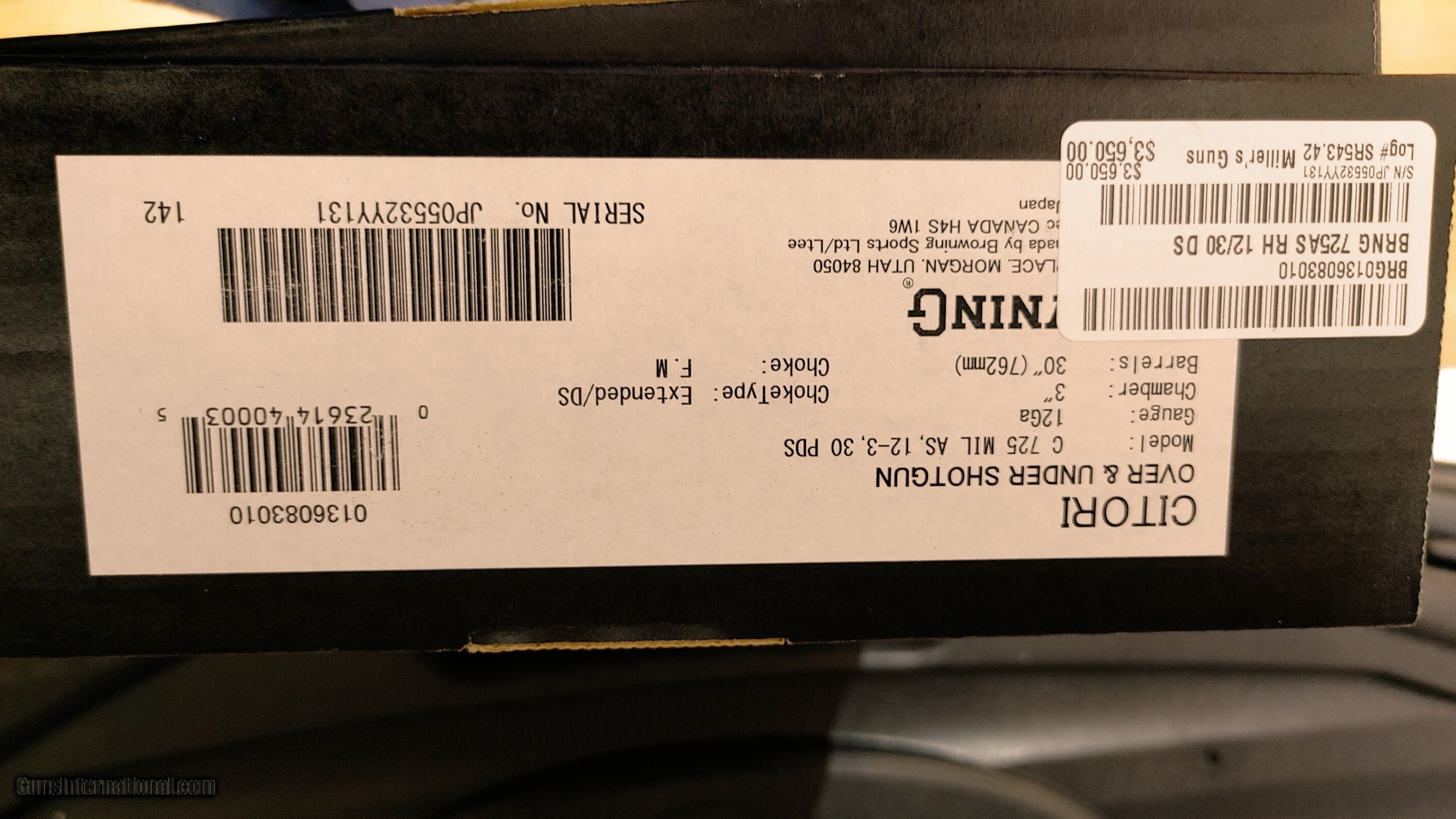 New Browning Miller 725 12 Gauge 30" barrels 3 trigger shoes 5 chokes lock manual sights and sight holder new 2022 inventory