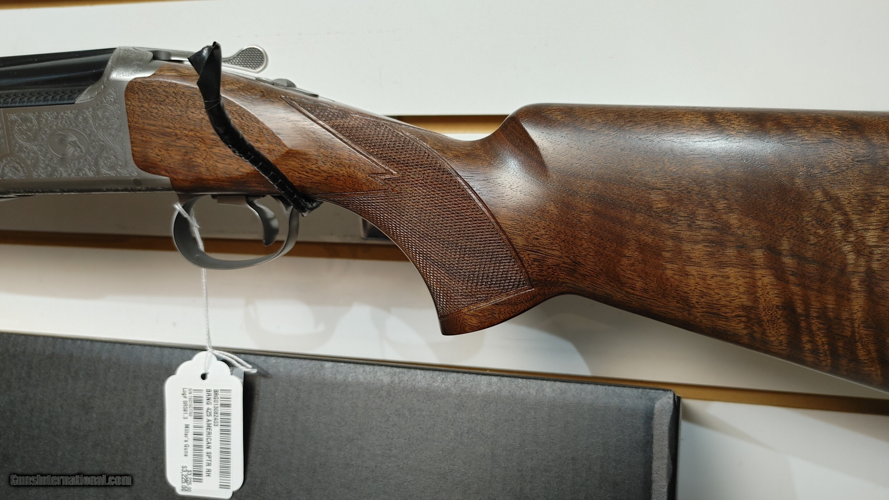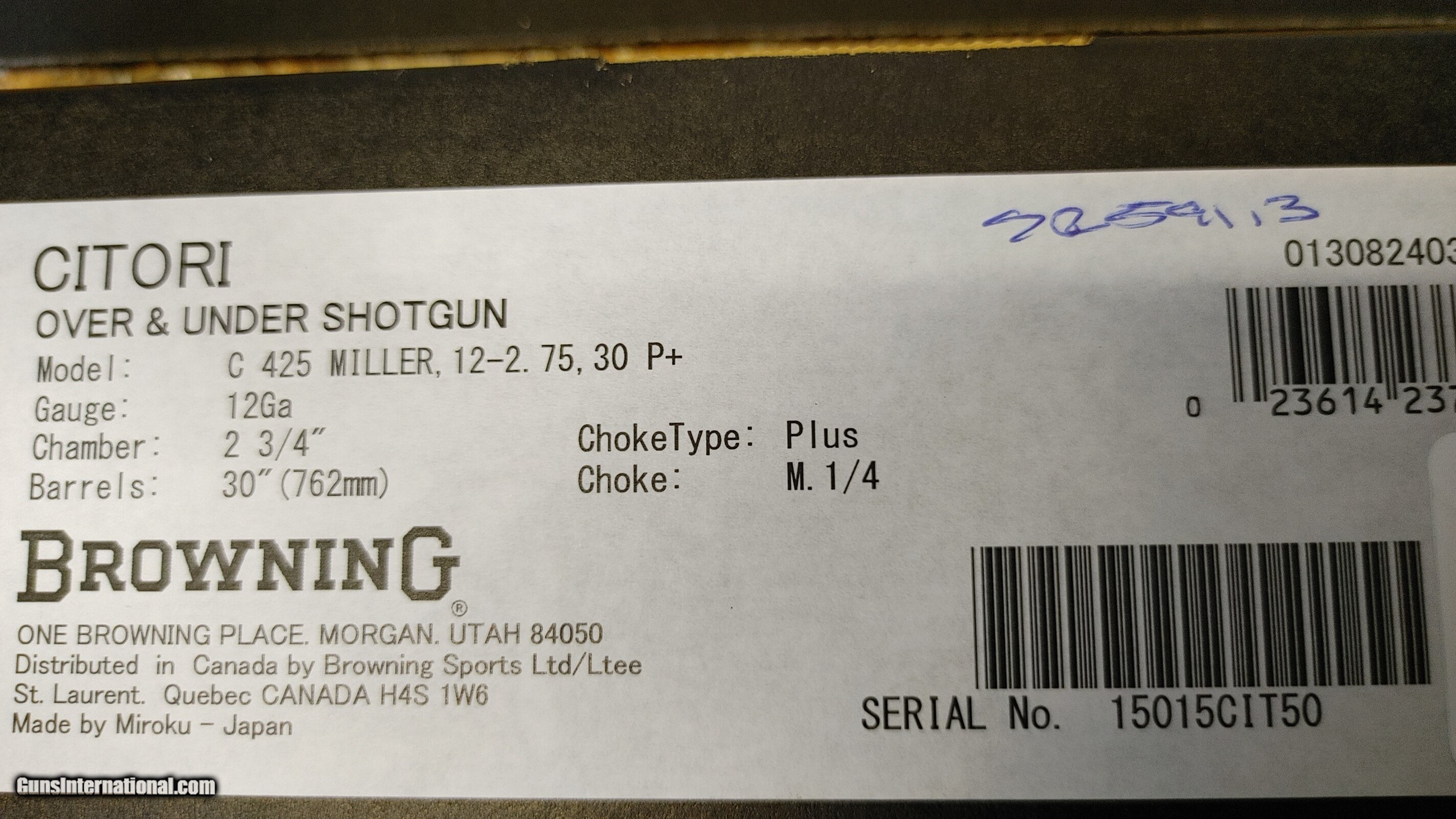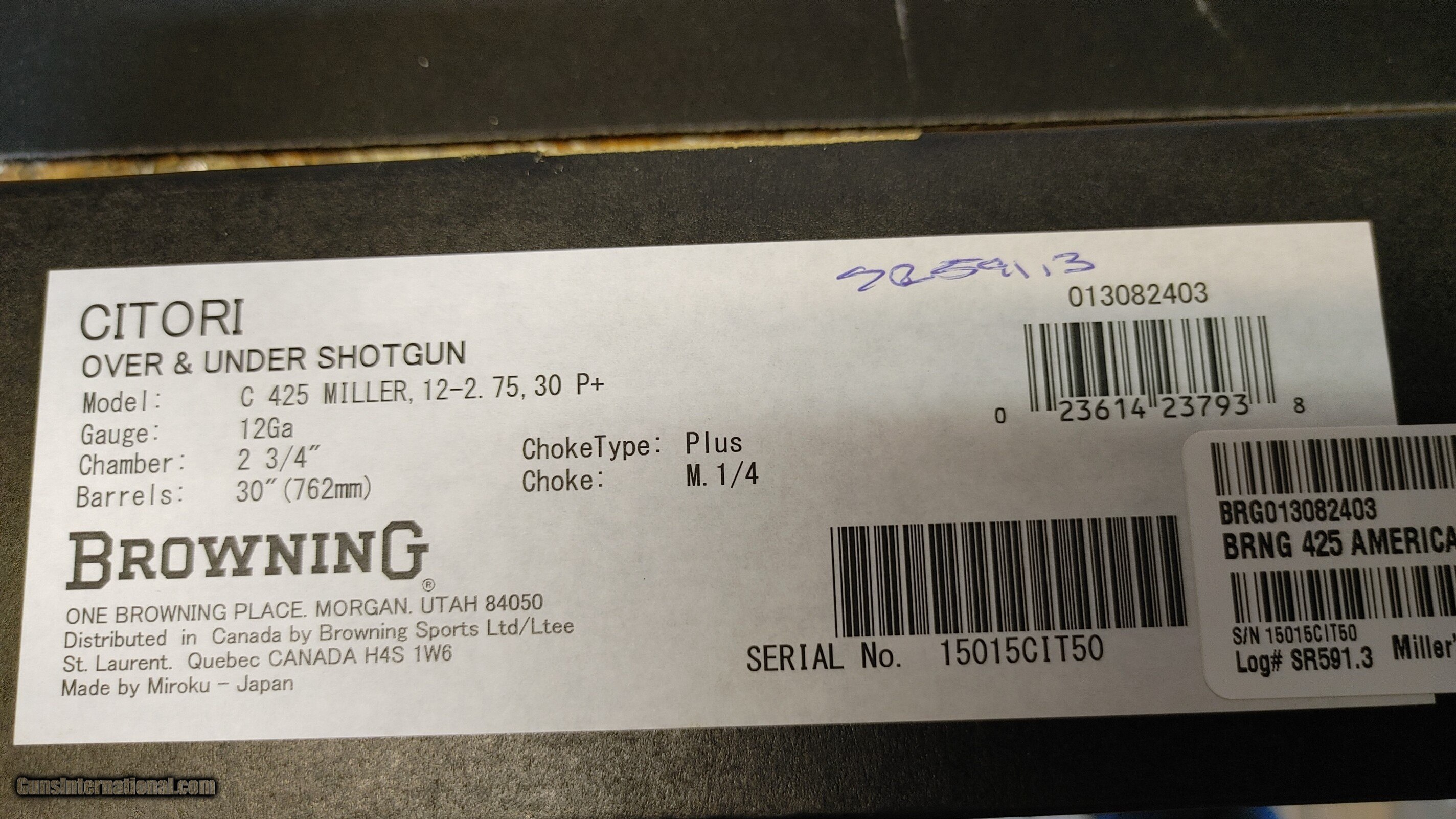 Description: New Browning Millers 425 12 gauge 30" ported barrel Grade 2-3 wood Oil finish Gray Receiver Custom Engraving 3 trigger system- Grey Finish Triggers 4 chokes 1 skeet 2 imp cyl 1 modified wrench tool manuals lock Buyer pays shipping Millers Gun Center Located in New Castle, Delaware "Home of TAX-Free shopping" No Credit Card Fees Send Gun international inquiry and then call 302-328-9747 to complete your purchase SOLD Shotgun Gauge: 12 Gauge Manufacturer: Browning Model: 425 Serial Number: 15015CIT50 Barrel Length: 30 |