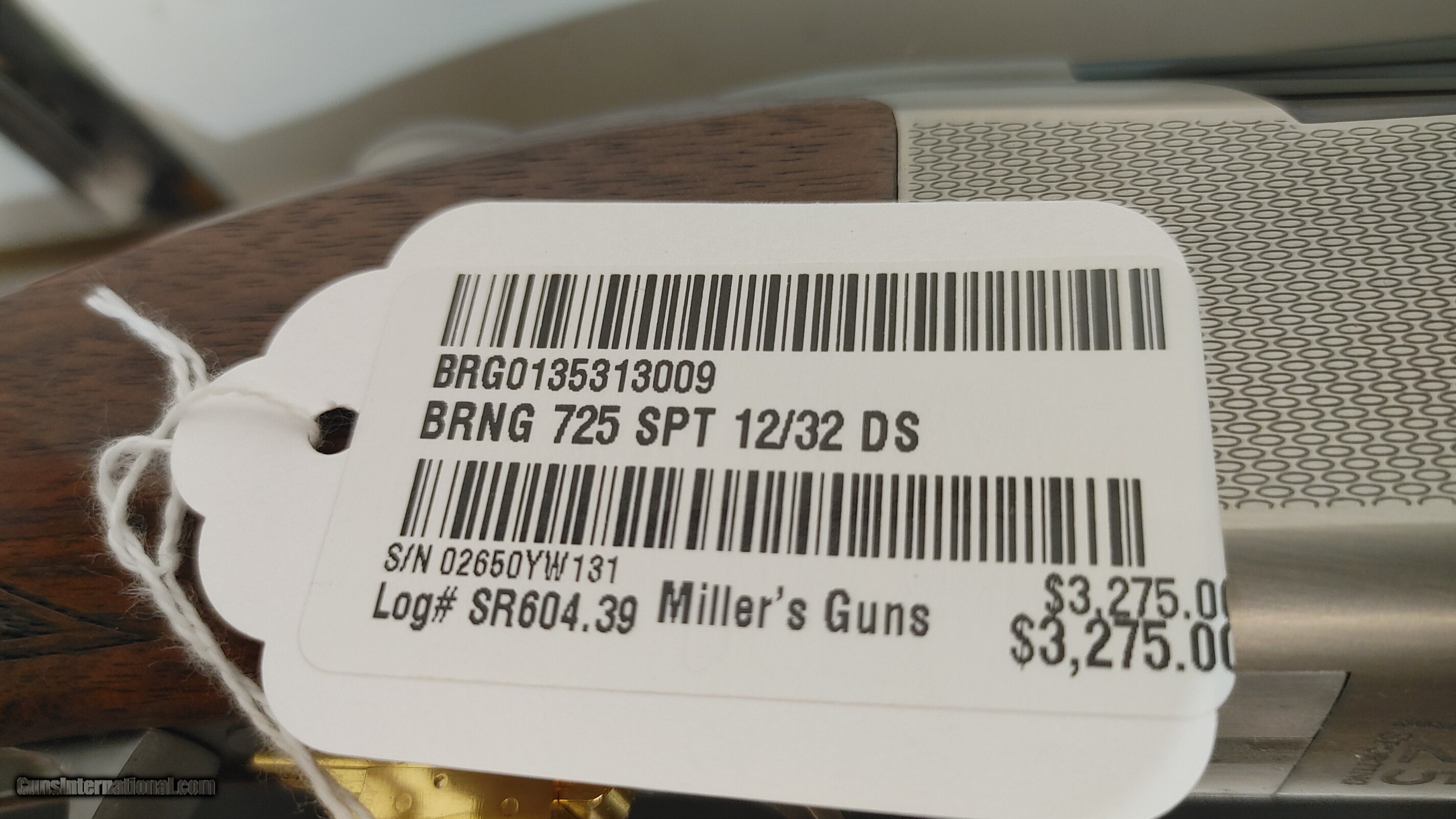 Description: new Citori 725 SPRTNG OU 12 gauge 3" 32" new condition (CALIBER:12 GAUGE); (MAG CAPACITY:2); (MODEL SERIES:CITORI); (CAPACITY:2); (FINISH:BLUE); (STOCK:GLOSS OIL/ GRADE III/IV WALNUT); (SIGHTS:HIVIZ PRO-COMP SIGHT + IVORY MID BEAD); (OVERALL LENGTH:50); (FEATURES:VENTILATED TOP + SIDE RIBS/ TRIPLE TRIGGER SYSTEM); (GUN TYPE:SHOTGUN: OVER AND UNDER); (ACTION:OVER + UNDER); (BARREL LENGTH:32 PORTED BARREL); (DEPT:LONG) Buyer pays shipping Millers Gun Center Located in New Castle, Delaware "Home of TAX-Free shopping" No Credit Card Fees Send Gun international inquiry and then call 302-328-9747 to complete your purchase SOLD Serial Number: 02650YW131 |