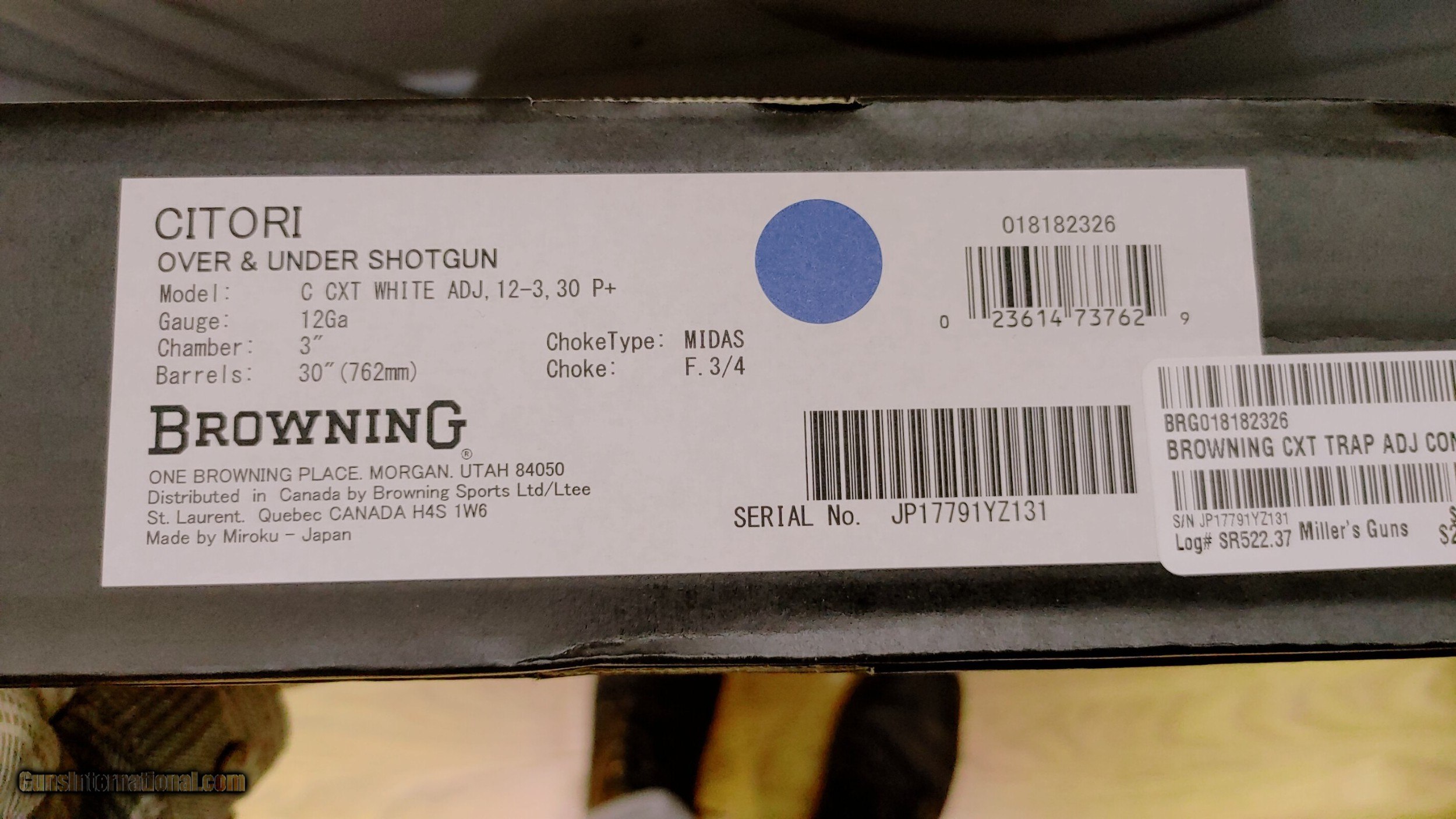 Description: new CITORI CXT WHITE ADJ 12/30 3# BL/WD ADJUSTABLE COMB new in box 3 chokes 1 mod 1 full 1 im (MODEL:CITORI CXT WHITE); (ACTION:OVER / UNDER); (CAPACITY:2); (RECEIVER:SILVER NITRIDE); (SIGHTS:IVORY FRONT + MID BEAD SIGHTS); (STOCKFRAMEGRIPS:GRADE II AMERICAN WALNUT WOOD STOCK); (WEIGHT:8 LBS. 6 OZ.); (OVERALLLENGTH:47); (CHAMBER:3); (BARREL LENGTH:30); (DRILL-TAPPED:FALSE); (SHOTGUN:) Buyer pays shipping Millers Gun Center Located in New Castle, Delaware "Home of TAX-Free shopping" No Credit Card Fees SOLD Serial Number: JP17791YZ131 |