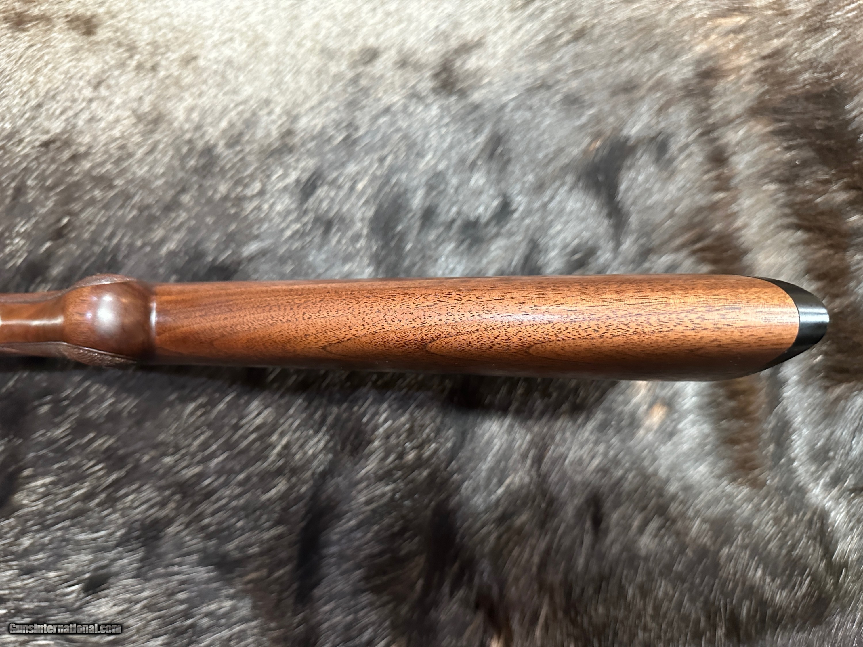 - STOCK: Beautiful Grade III Black Walnut Lightning-style Stock with Gloss Oil Finish, 18-LPI Checkering, and Rounded (Prince of Wales) Pistol Grip