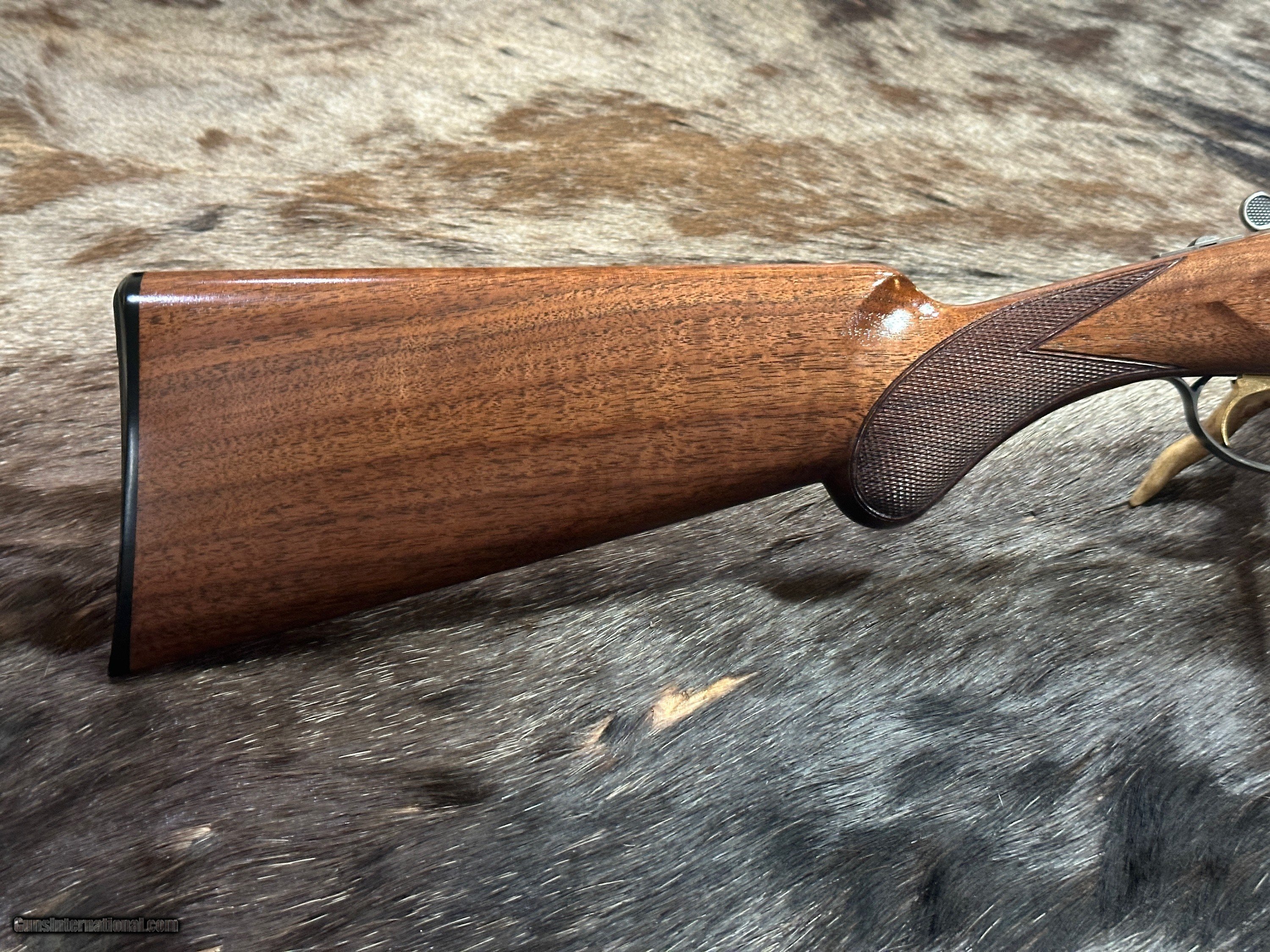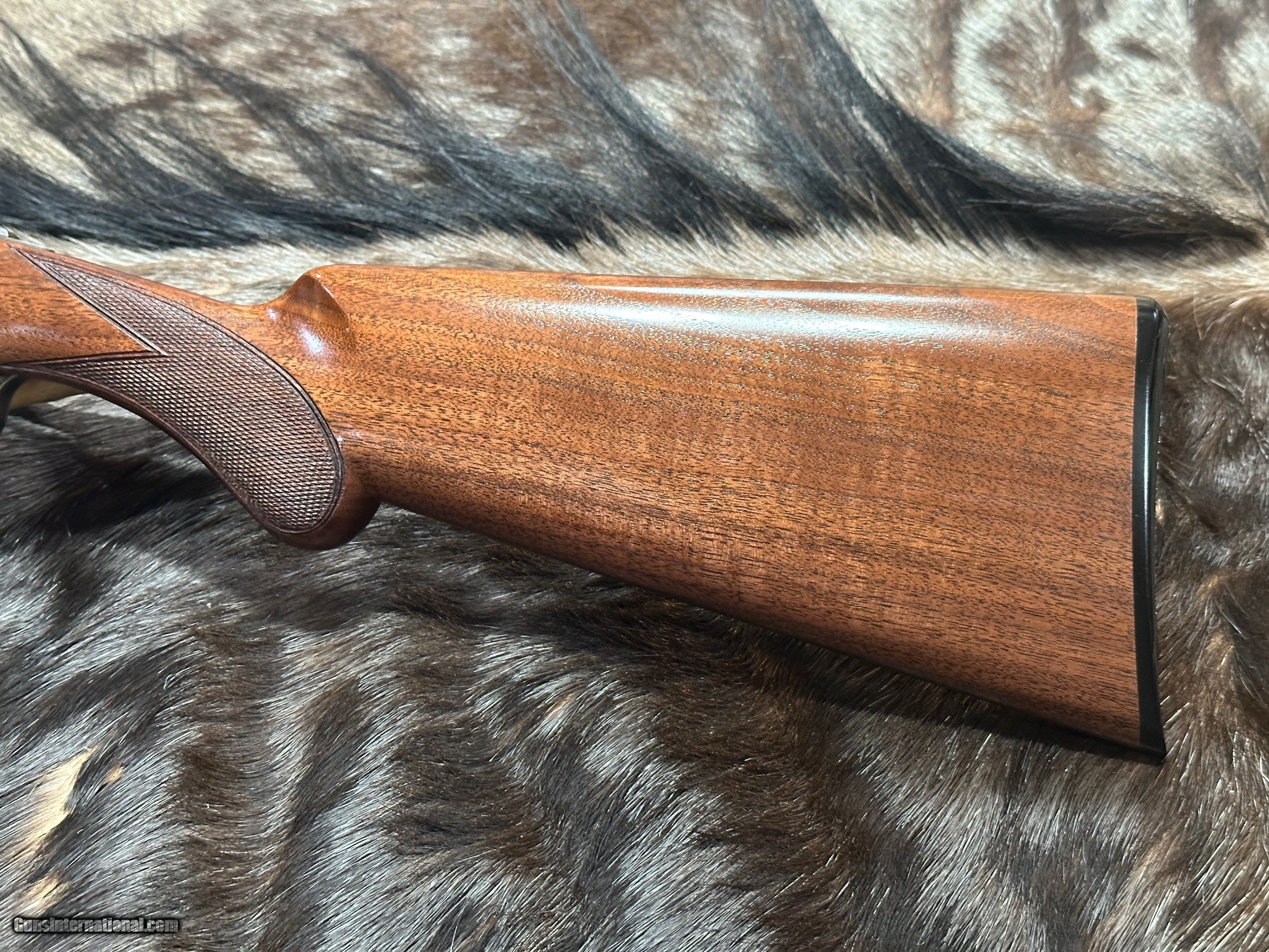 - STOCK: Beautiful Grade III Black Walnut Lightning-style Stock with Gloss Oil Finish, 18-LPI Checkering, and Rounded (Prince of Wales) Pistol Grip