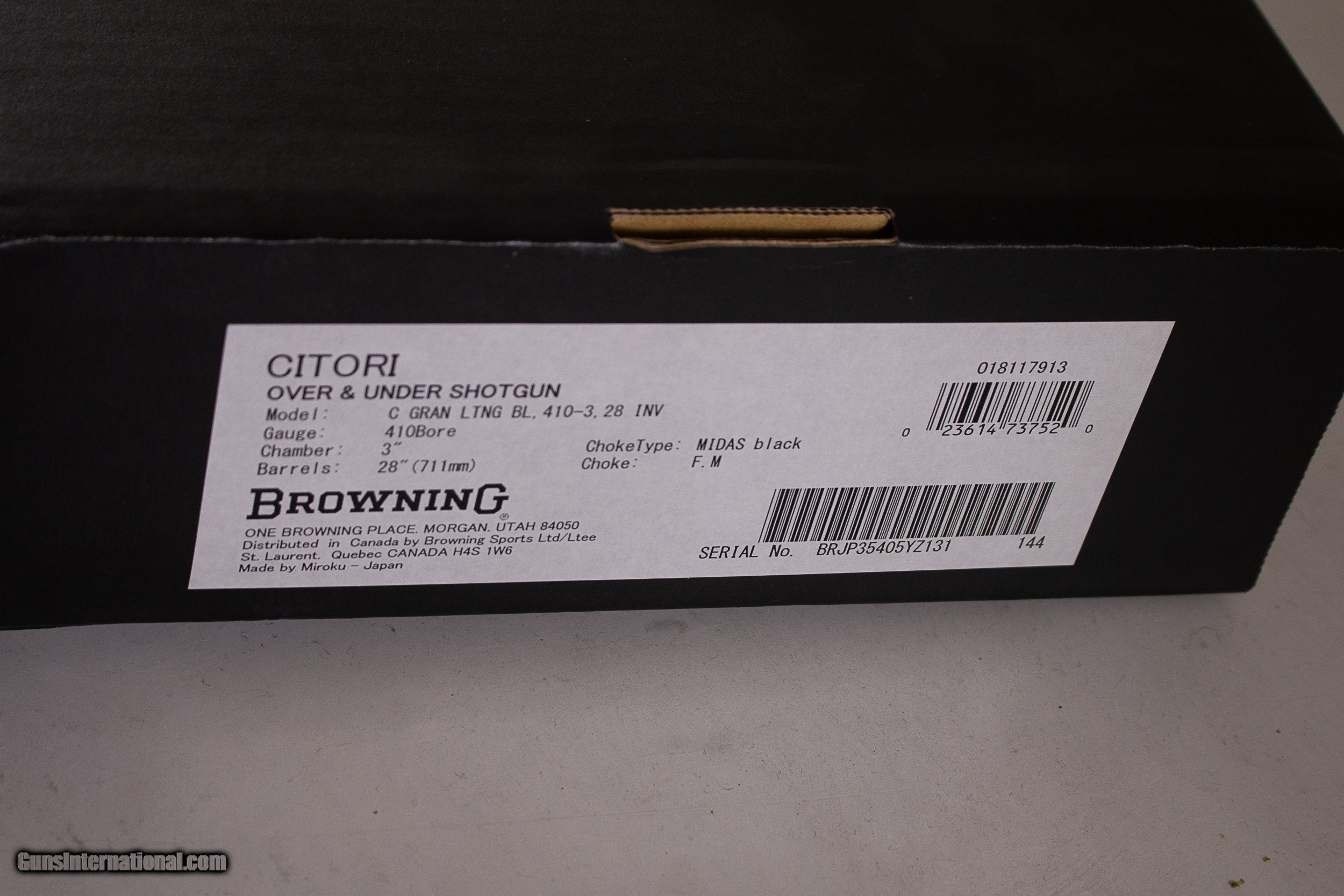 Description: SALE PENDING - MADE IN JAPAN IN 2021. BARREL IS 28'' WITH A VENT RIB AND INVECTOR CHOKED. NEW IN BOX. PLEASE ADD $50 FOR SHIPPING. SOLD Shotgun Gauge: .410 Gauge Manufacturer: BROWNING Model: CITORI Condition: NIB Metal Condition: NIB Wood Condition: NIB Bore Condition: NIB |