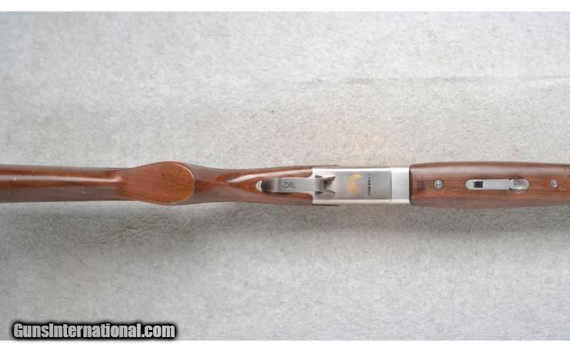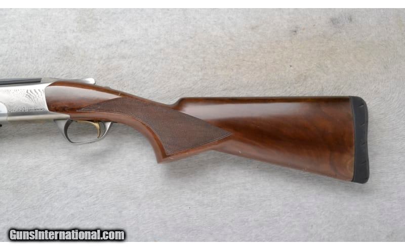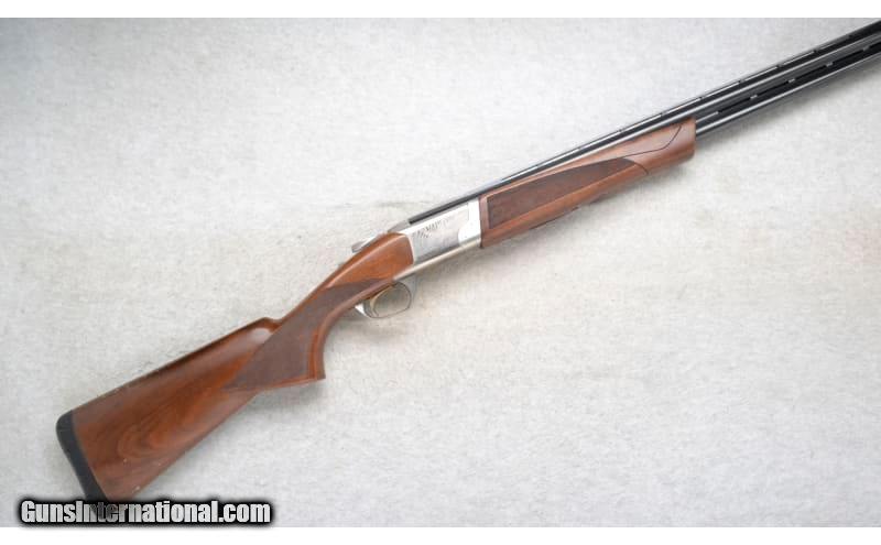 Description: This Browning Model Cynergy (gold feather) is an over and under shotgun in 12 Ga. It has 28 inch ventilated rib barrels with ejectors. A white bead front sight. With 3 inch chambers it has Invector-Plus choke and comes with extra choke tubes. It has a Single Select Trigger. The butt stock is a checkered grip walnut pistol grip. The forearm is a checkered grip walnut. The alloy receiver is engraved with a pheasant and duck in flight. Made in Japan. 12 Gauge SOLD Chambers: 3 inch. Metal Condition: Excellent. Wood Condition: Good. Has some handling/use marks.Two small cracks in the bottom of the forearm at the receiver. Bore Condition: Bright and Shiny. Barrels: 28 inch ventilated rib barrels with ejectors. Triggers: SST Stock Dimensions: LOP 14 1/4 inches. Fore End: Checkered grip walnut. Butt Pad: Inflex Technologies black rubber recoil pad. Weight: 6 lb. 12 oz. Sights: White bead front sight. Chokes: Invector-Plus Choke. Comes with extra choke tubes. Item Location: Richfield, WI |