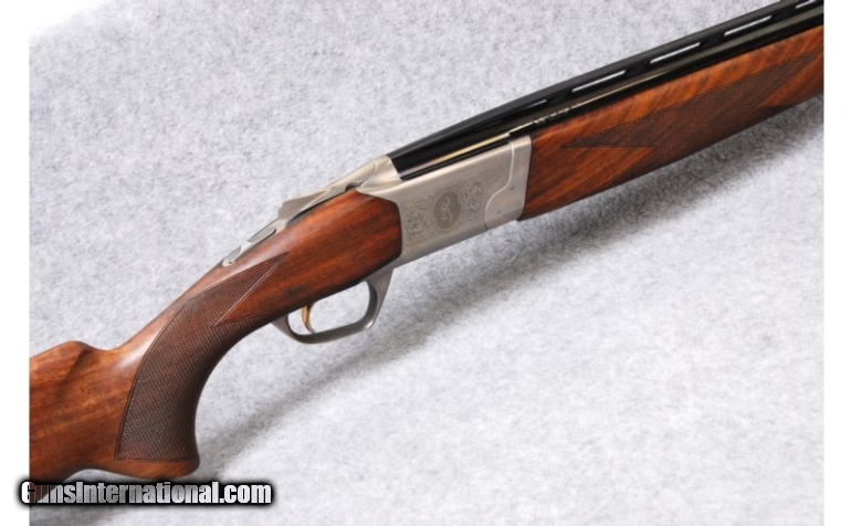 Description: SOLD Caliber Info: 12 gauge. Chambers: 2 3/4" chambers. Metal Condition: Gray receiver, embosed Browning insignia, upper tang barrel selecting safety and ejectors. Wood Condition: Minor dings. Bore Condition: Excellent. Barrels: 32" with a wide, tapering sporting vent rib. Triggers: Gold, checkered and adjustable. Stock: Nicely figured walnut with a satin finish, checkered pistol grip and no palm swell. Stock Dimensions: LOP: 14 3/4", DAC: 1 9/16", DAH: 2 1/4". Fore End: Checkered fore end with a semi-Schnabel tip. Butt Pad: Hard rubber butt pad. Weight: 8 lbs. 4 oz. Sights: Green optic front sight and white center bead. Chokes: Screw-ins. Extras: Comes with a Browning case. Item Location: Kansas City, KS |
