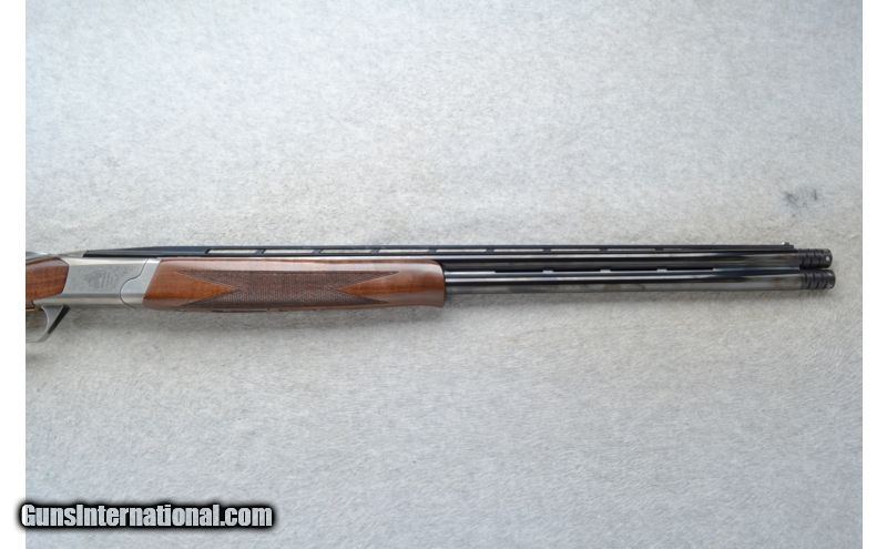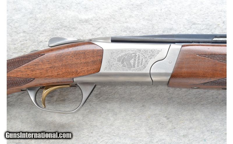 Description: This Browning Model Cynergy Classic is a 20 Ga. Over and Under shotgun. It has 26 inch ventilated rib barrels with ejectors. White front and middle bead sights. With 3 inch chambers it has Invector-Plus Choke. Comes with 3 choke tubes. The stock is a checkered grip walnut pistol grip butt and forearm. The receiver is nicely engraved with scroll and game birds in flight in an outdoor scene. SOLD Manufacturer: Made in Japan/Miroku Caliber Info: 20 Ga. Chambers: 2 3/4 inch or 3 inch Over/ Under with ejectors. Metal Condition: Excellent. Wood Condition: Excellent. Bore Condition: Very clean, bright and shiny. Barrels: 26 inch blued ventilated rib barrels. Triggers: Single Golden. SST. Stock: Checkered walnut pistol grip. Stock Dimensions: LOP 13 3/8 inches. Fore End: Checkered grip walnut schnable style. Butt Pad: Pachmayr black rubber recoil pad. Weight: 6 lbs. 4 oz. Sights: White front and middle beads. Chokes: Invector-Plus Choke. Comes with one IC tube. Two .010 Comp-N-Choke 10 BIP tubes. Extras: Comes in a browning box with 3 choke tubes, choke wrench and chamber locks. Item Location: Oklahoma City, OK |