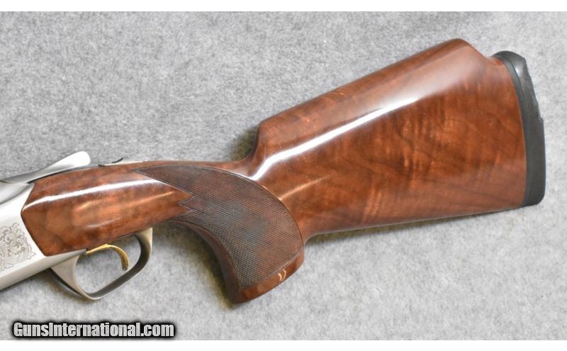 Description: SOLD Manufacturer: 2009 Caliber Info: 12 GA Chambers: 3 inch Metal Condition: excellent condition, a few light handling marks on the barrel Wood Condition: excellent condition, a few minor handling marks Bore Condition: bright and shiny Barrels: 30 inch vent rib with porting Triggers: single, checkered trigger Stock: checkered walnut pistol grip with palm swell Stock Dimensions: 14.75 inch lop Fore End: checkered walnut Butt Pad: rubber Kick-Eez brand pad, some tears on the pad Weight: 8.3 lbs Sights: green fiber optic front, white bead rear Chokes: screw in, Invector Plus style Extras: comes with the factory box and a full set of (5) Browning choke tubes Item Location: Kansas City, KS |
