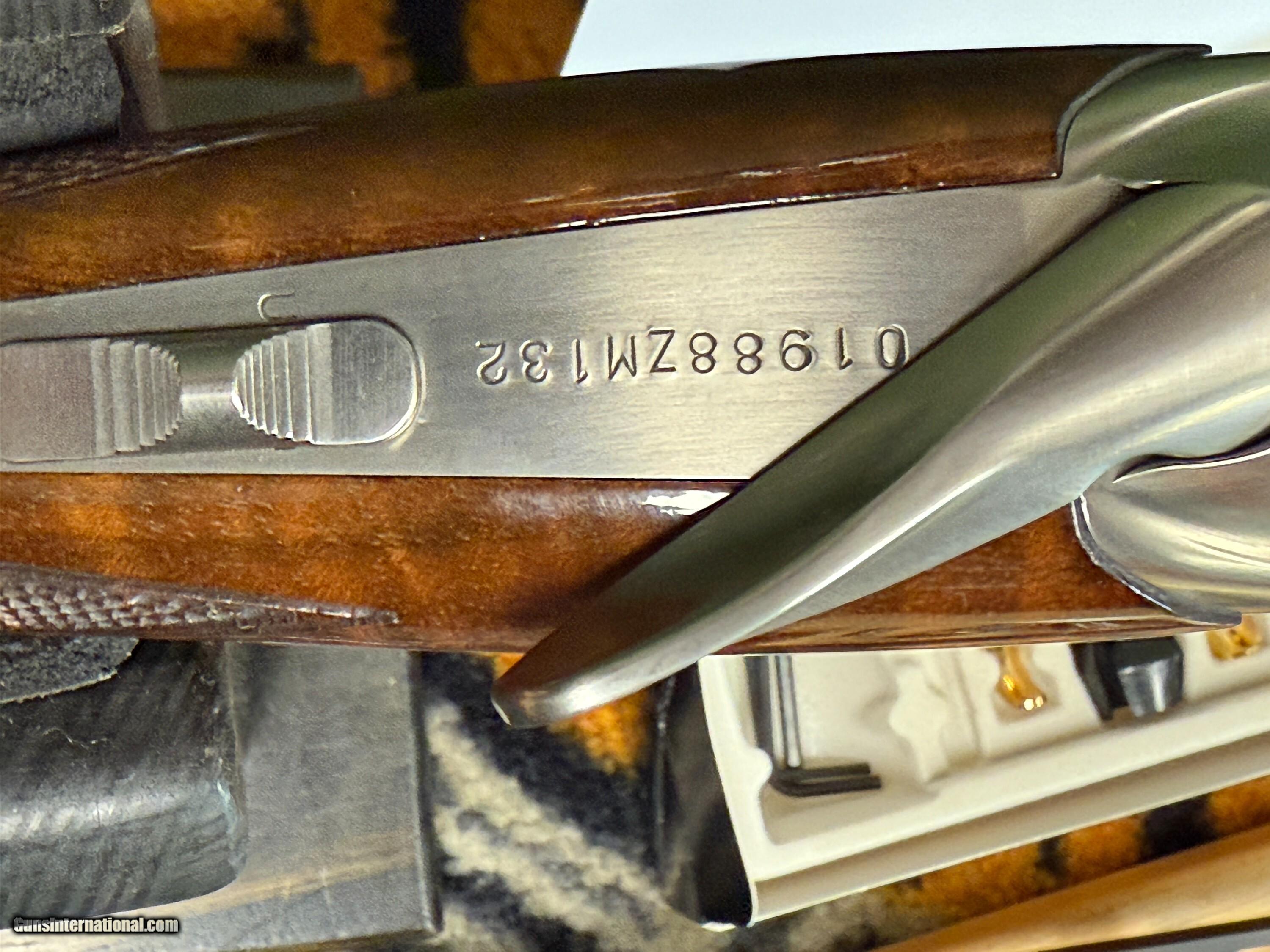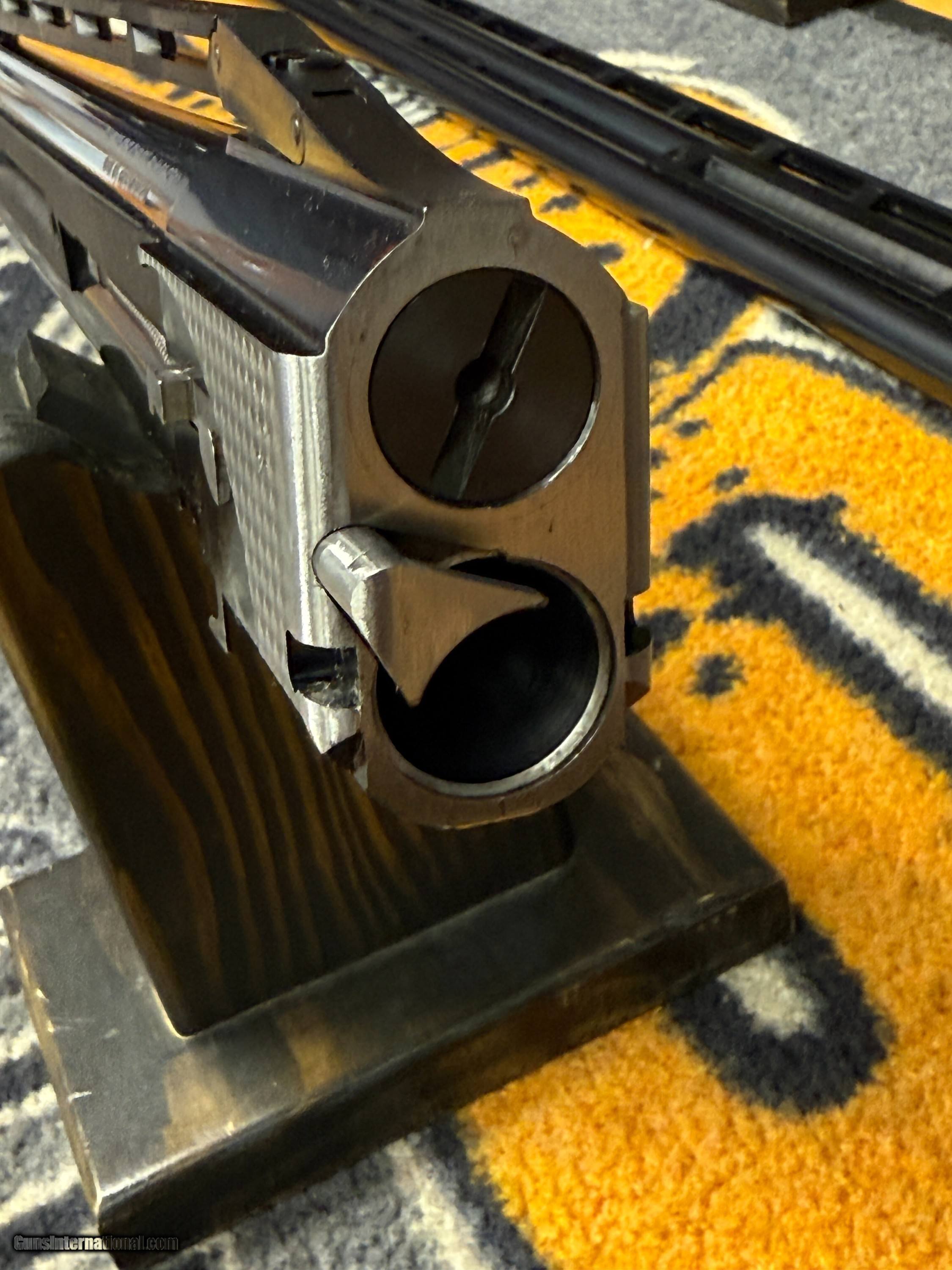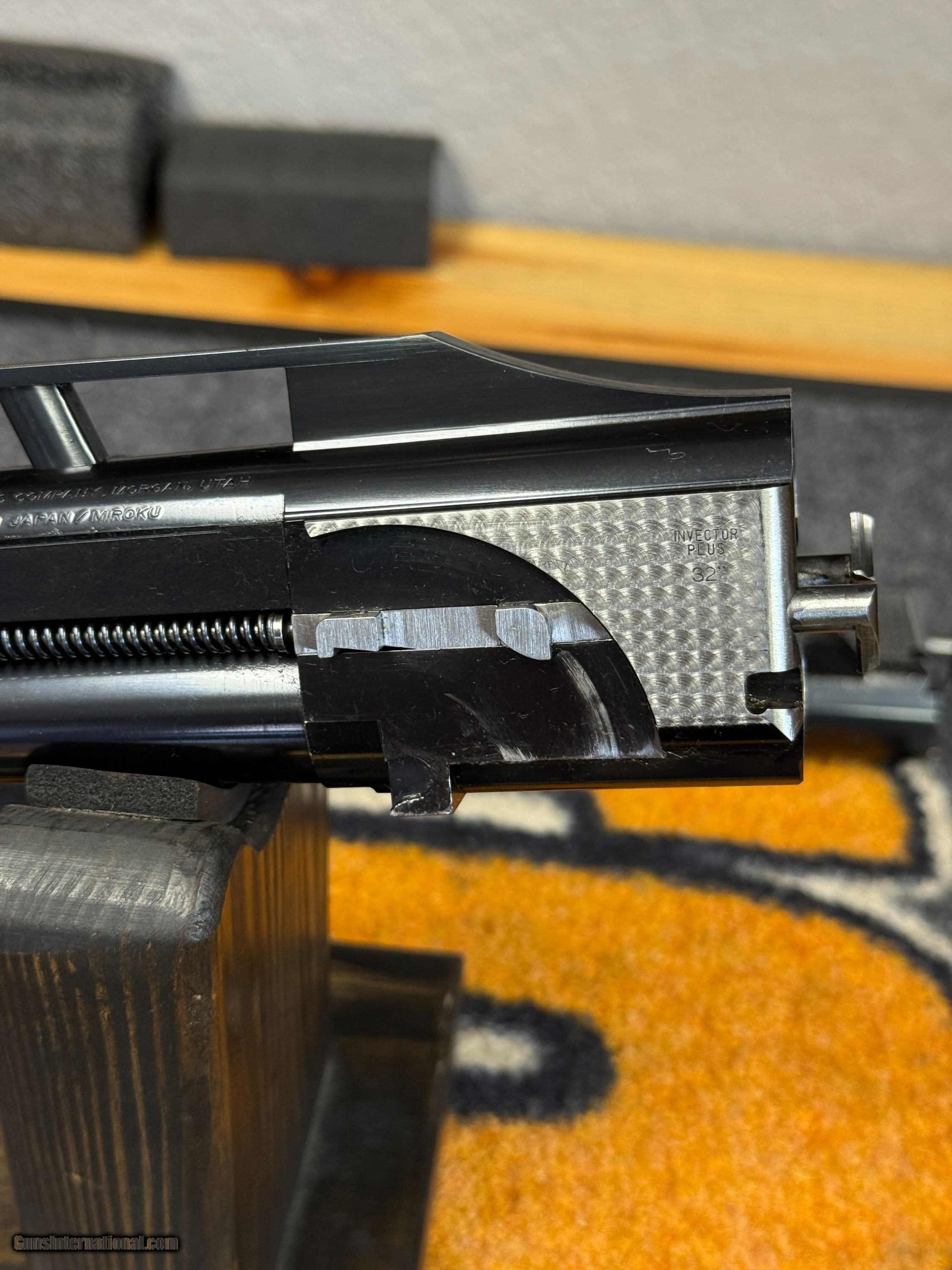 Gauge12 Chamber Length2 3/4" Barrel Length 32" over under / 34" Un-Single Length of Pull14 3/8" Drop at Comb1 11/16" Adj Drop at Heel 2" Adj Weight8 lbs 13 oz Rib Width1/4 - 3/8" Barrel Finish Polished Blued Stock Finish Gloss Wood GradeGrade III/IV Six Invector-Plus Midas Extended Chokes Included (2) Full, (2) Improved Modified, Modified, Extra Full Receiver Finish Silver Nitride Chamber Finish Chrome Plated Chamber Front SightHiViz Pro-Comp Barrel MaterialSteel Stock Material Black Walnut Recoil Pad Brown Trap CheckeringCut 18 LPI Trigger FinishGold Plated Trigger Guard Finish Silver Nitride For more information contact Bad Oscar Shooting Sports at 715-388-8411 Shotgun Gauge: 12 Gauge Manufacturer: Browning Model: Cynergy Classic Trap Unsingle Combo Serial Number: 01988ZM132 Barrel Length: 32/34 Chambers: 2-3/4 Ejectors: Impact - Auto Condition: Very Good Metal Condition: Excellent Wood Condition: Very good Bore Condition: Excellent Barrels: Over Under & Un-Single / Polished Blued Barrel Type: Steel Action: Break Action Triggers: Adjustable Stock: Black Walnut High Gloss LOP: 14-3/8 Rib: Trap Adjustable On the Unsingle Finish: Silver Nitride Weight: 8lbs 13oz Sights: Hi Viz Manufacture Date: 2010 Chokes: Invector Plus Midas Engraving: Detailed Browning Buck Mark Case: Factory Fitted Canvas Item Location: Wisconsin Price: $3,500.00 Shipping: $56.00 Contact Seller |