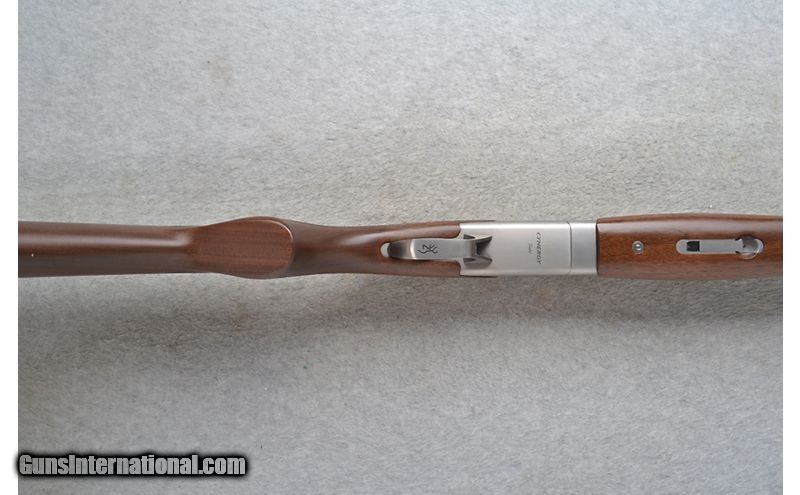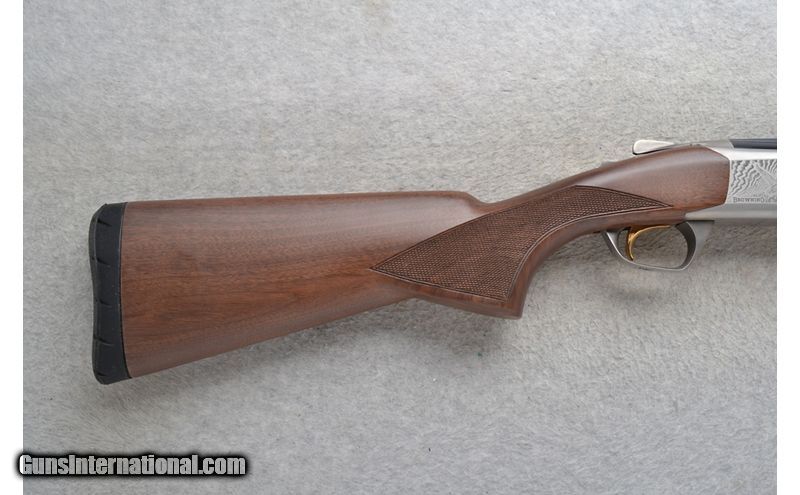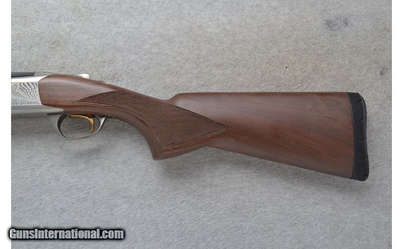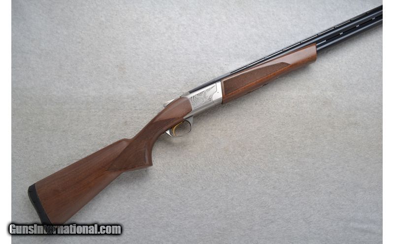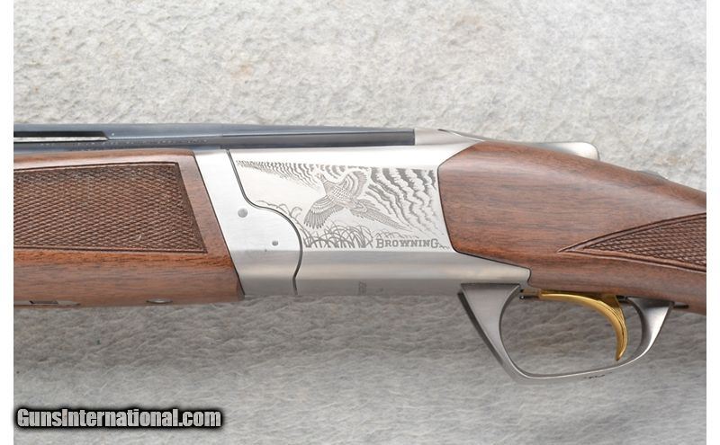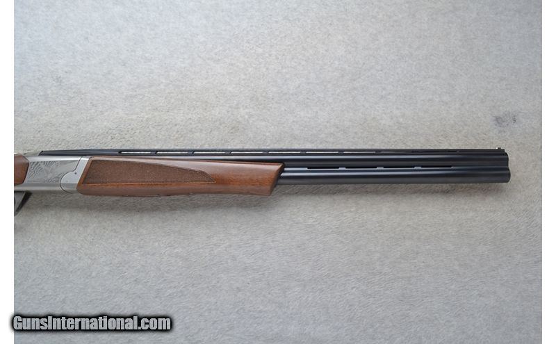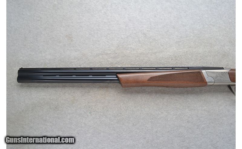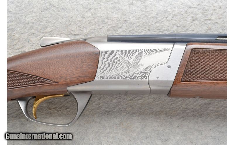 Description: This Browning Model Cynergy Field is a right hand Over and Under 12 Ga. shotgun. It has 26 inch ventilated rib barrels. A white bead front sight. With 3 inch chambers it has Invector-Plus choke and comes with 3 tubes. A golden SST. The butt stock is a checkered grip walnut pistol grip. The forearm is a checkered grip walnut. The receiver is very nicely engraved with a pheasant and a duck in flight in an outdoor scene. Made in Japan/ Miroku. 12 Gauge SOLD Chambers: 2 3/4 inch and 3 inch. Metal Condition: Excellent. Wood Condition: Excellent. A couple of minor handling marks. Bore Condition: "Clean, bright and shiny. Barrels: 26 inch ventilated rib barrels. Triggers: SST. Golden. Stock Dimensions: LOP 14 1/4 inches. Fore End: Checkered grip walnut. Butt Pad: Inflex Technologies black rubber recoil pad. Weight: 7 Lb. 9 Oz. Sights: White front bead. Chokes: "Invector-Plus Choke. Comes with F, M and IC tubes. Item Location: Richfield, WI |