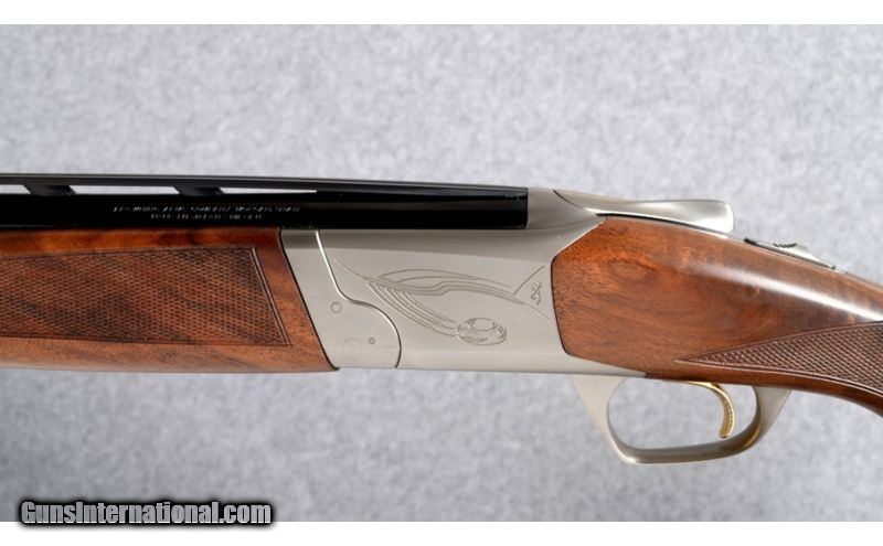 Description: SOLD Caliber Info: 12 Gauge Chambers: 2 3/4 Metal Condition: Very good with a few minor marks. Wood Condition: Very good overall, there is the occasional light scratch, but unfortunately there is a gouge on the forend's right side (see pic). Bore Condition: Excellent bore. Barrels: 32" Ported barrels. Triggers: Comes with three, adjustable for length of pull. Stock: Checkered walnut. Stock Dimensions: 14 1/4" LOP, adjustable with trigger adjustment. Fore End: Checkered. Butt Pad: Browning Inflex recoil pad. Weight: 8 Lbs. Sights: Tapered vent rib with Hi-Viz fiber optic front sight. Chokes: Invector Plus choke tubes, IC, MOD & FULL. Extras: Browning factory box, two extra triggers, extra Hi-Vis, orange, yellow and white fiber optic sights, and a total of three choke tubes, Invector Plus, IC, MOD & FULL. Item Location: Boise, ID |